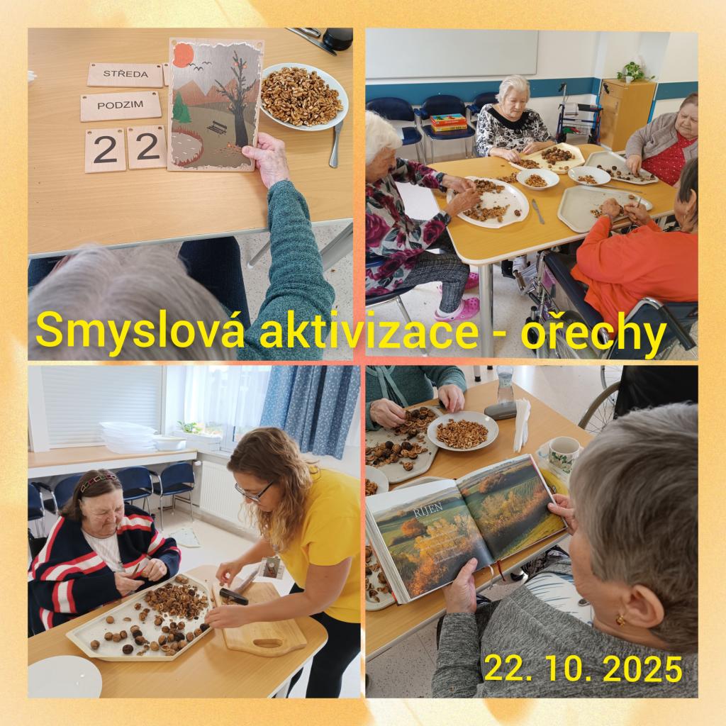 Klientky strávily dopoledne loupáním ořechů, které využijeme při pečení nejen vánočního cukroví. Při práci si klientky povídaly a zpívaly písničky s podzimní tématikou.