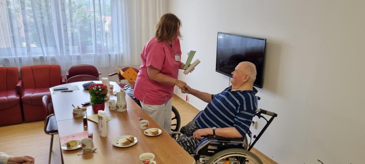 Páteční odpoledne patřilo oslavencům. Klienti, kteří se narodili v měsíci květnu a červnu, se sešli na posezení u kávy a bábovky.