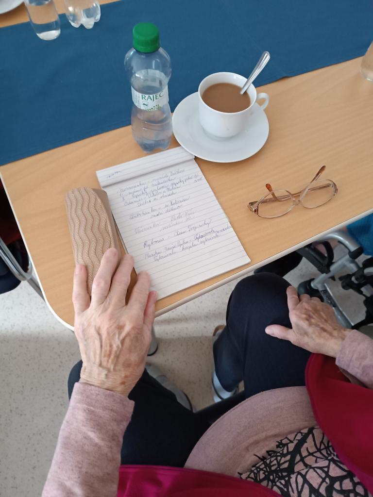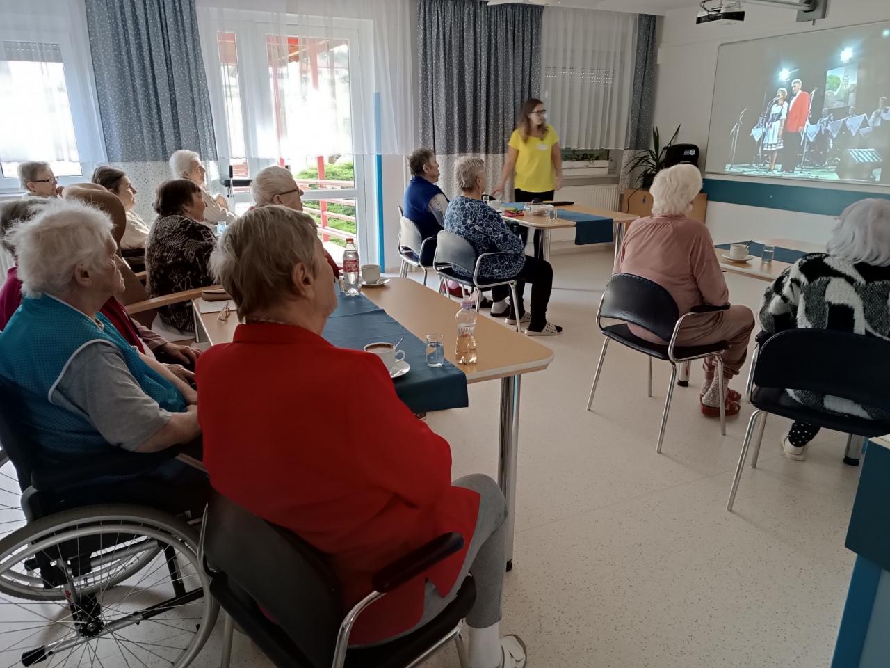Opět jsme se dopoledne sešli u písniček na přání. Každá z klientek měla možnost nechat si zahrát svou oblíbenou písničku. Všichni jsme si zazpívali a zavzpomínali na známé i méně známé zpěváky a zpěvačky.