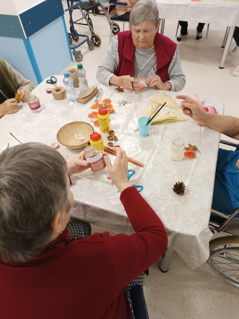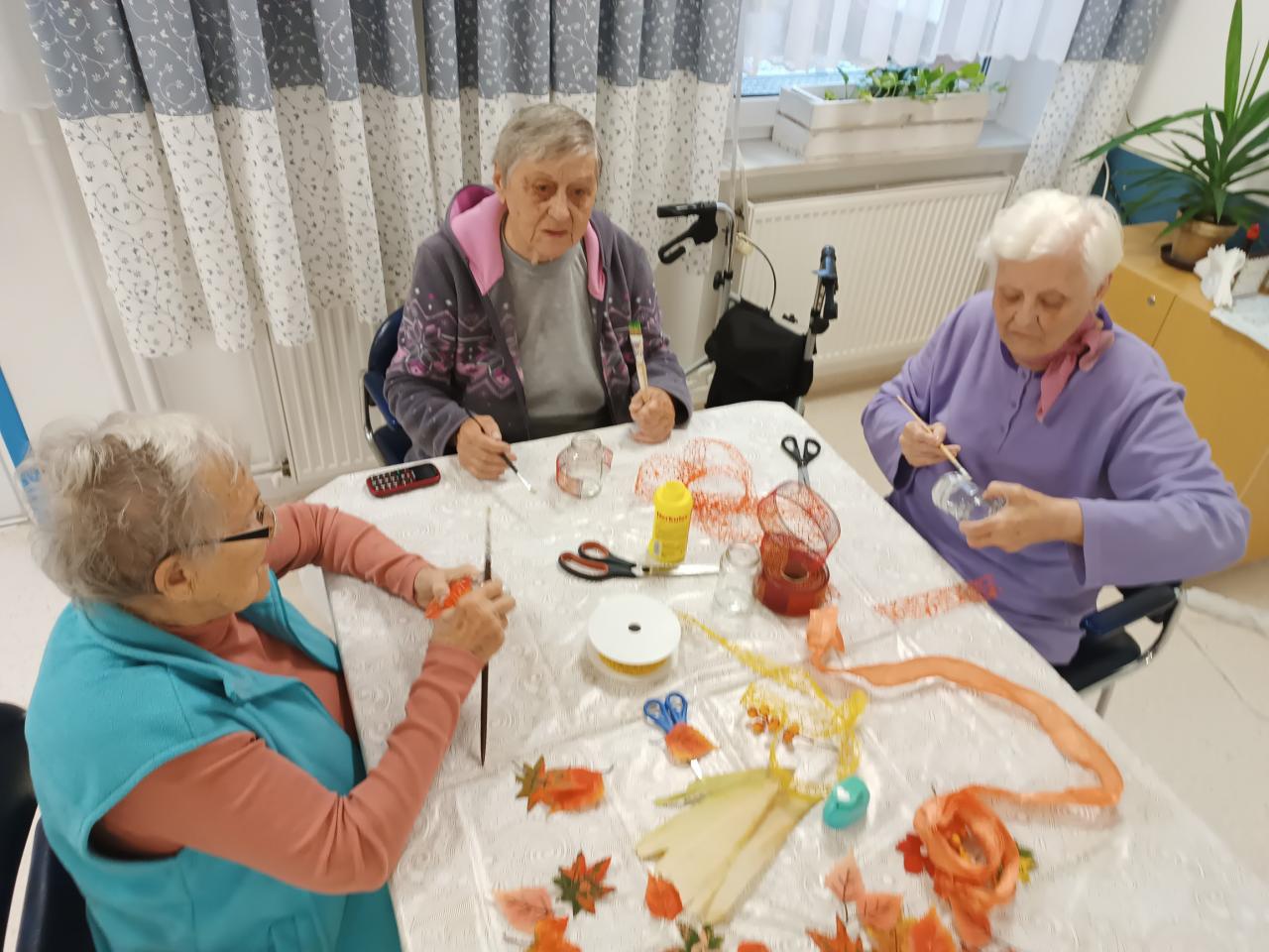 Dopoledne jsme věnovali výrobě lucerniček na dušičky, které si klienti vezmou u příležitosti památky zesnulých a zapálí si v nich svíčku za své blízké.