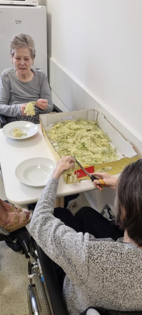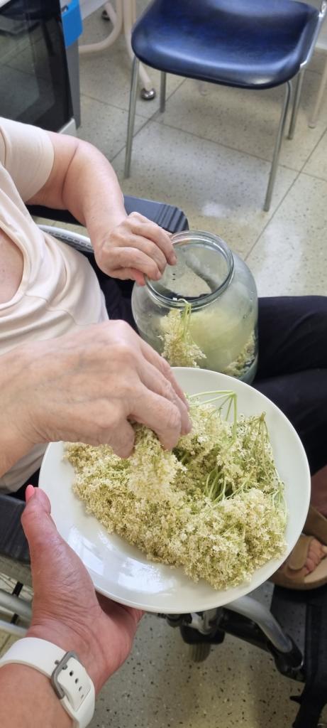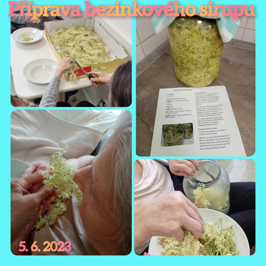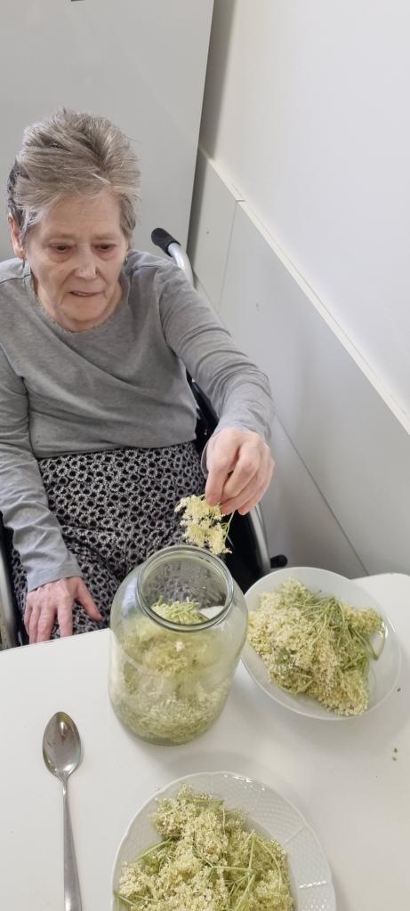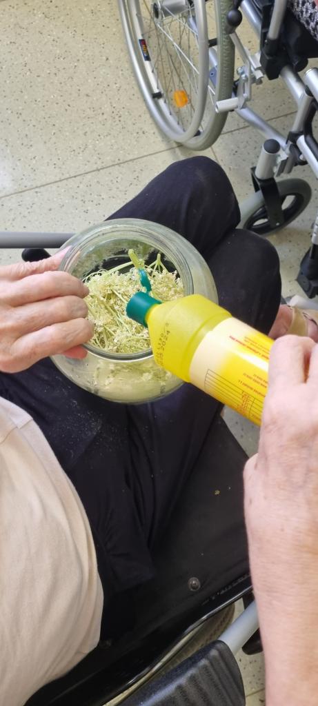Příprava bezinkového sirupu proběhla jako skupinová i jako individuální aktivita s imobilními klienty.