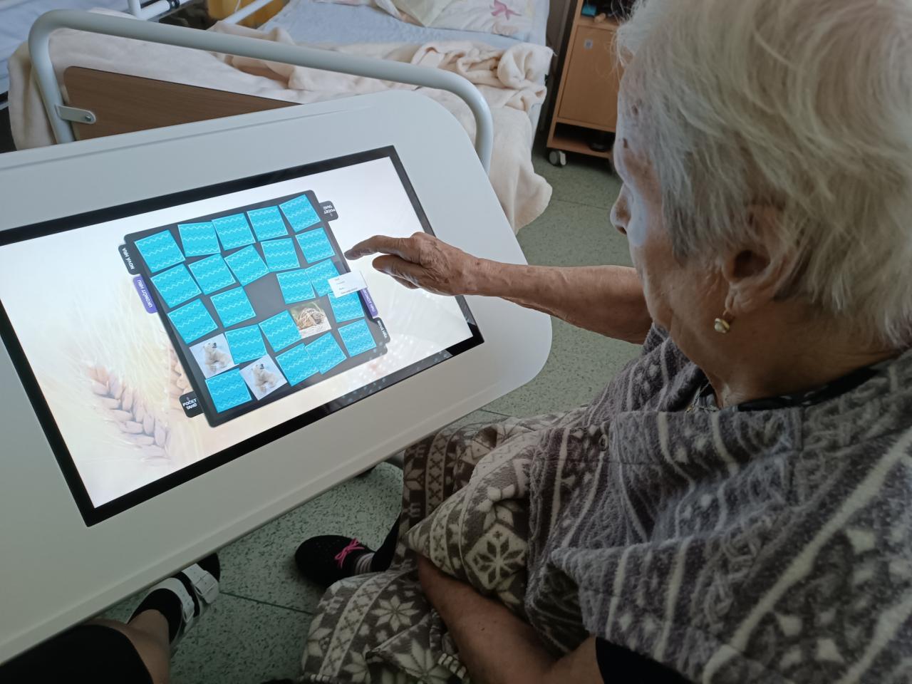 Při individuálních aktivitách využíváme na trénink paměti Sentable - seniorský tablet, na kterém si naši klienti mohou vyzkoušet různá cvičení na trénování paměti a taky zahrát hry jako je například pexeso.