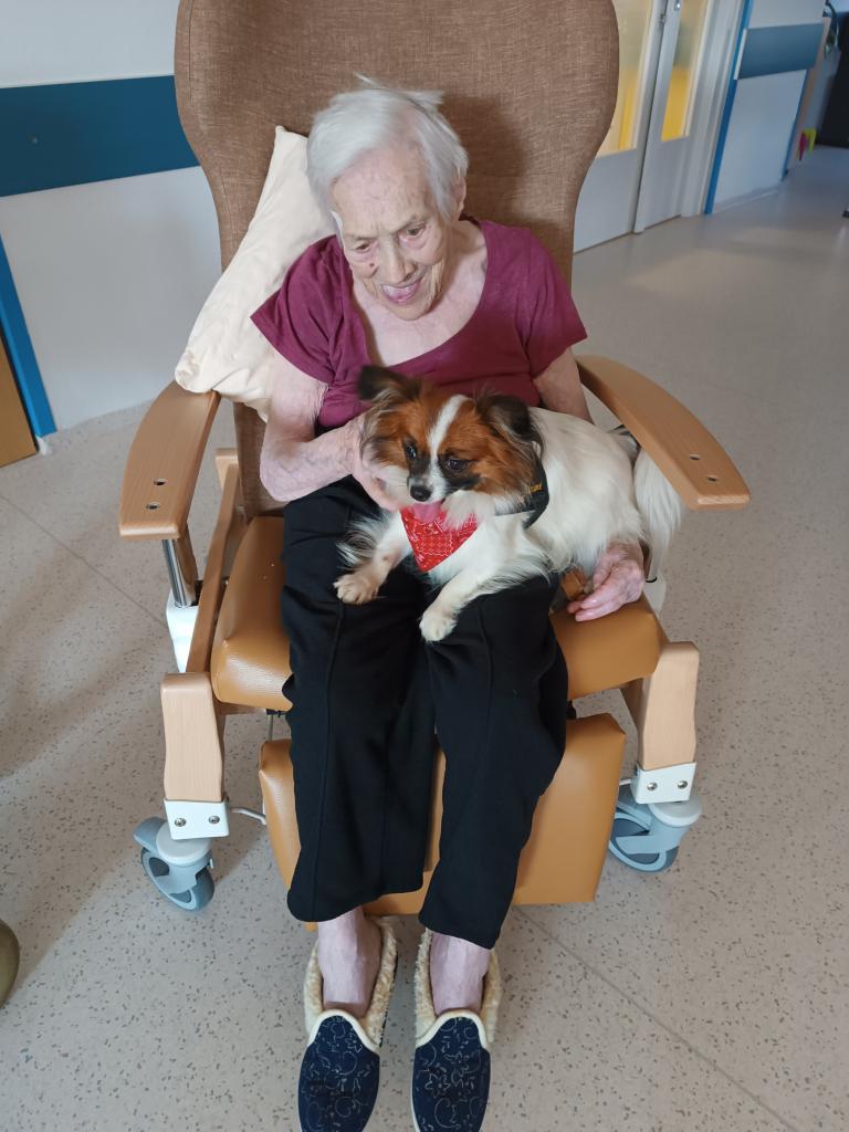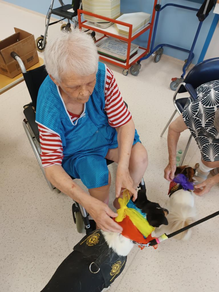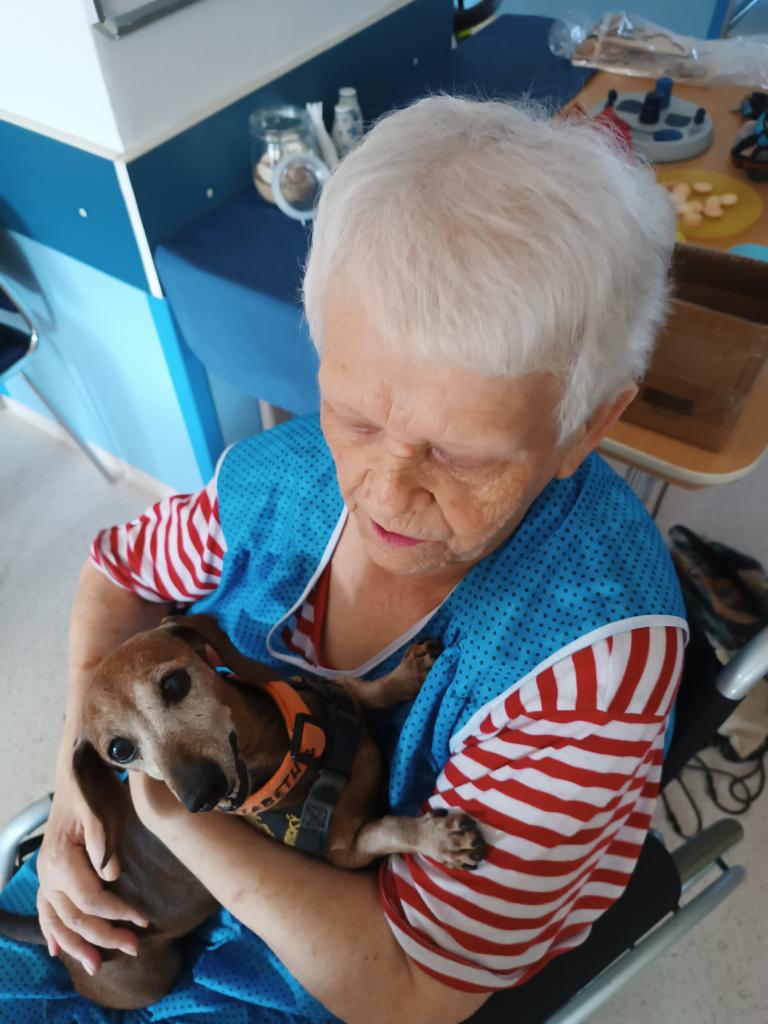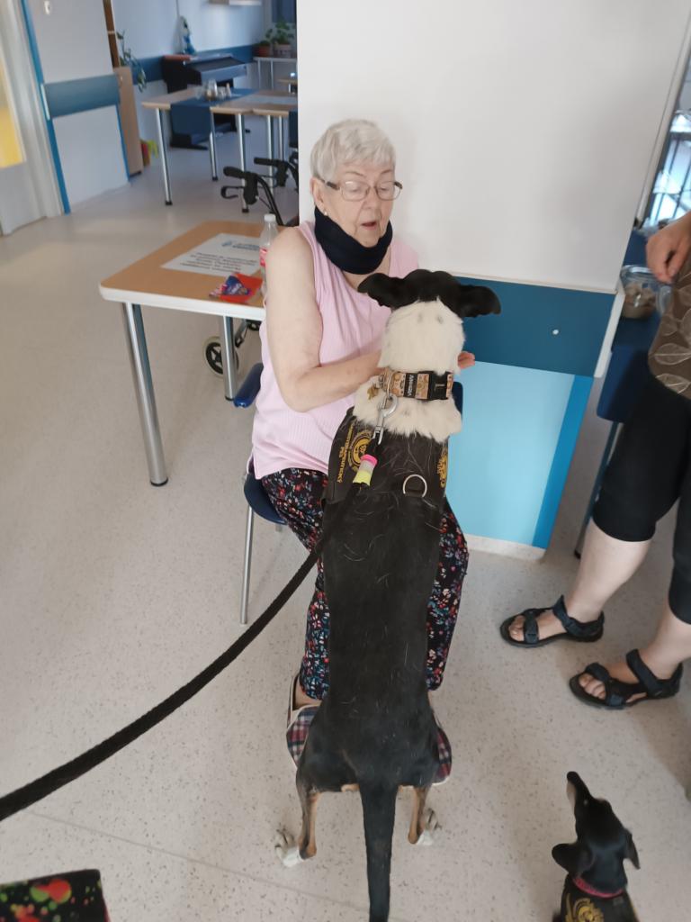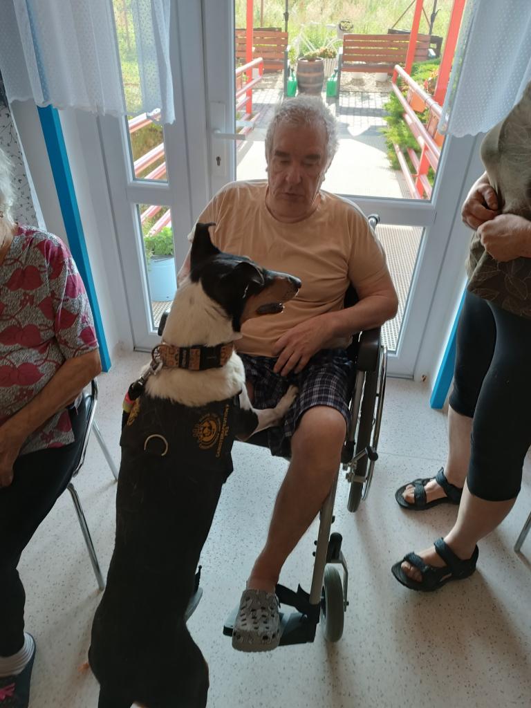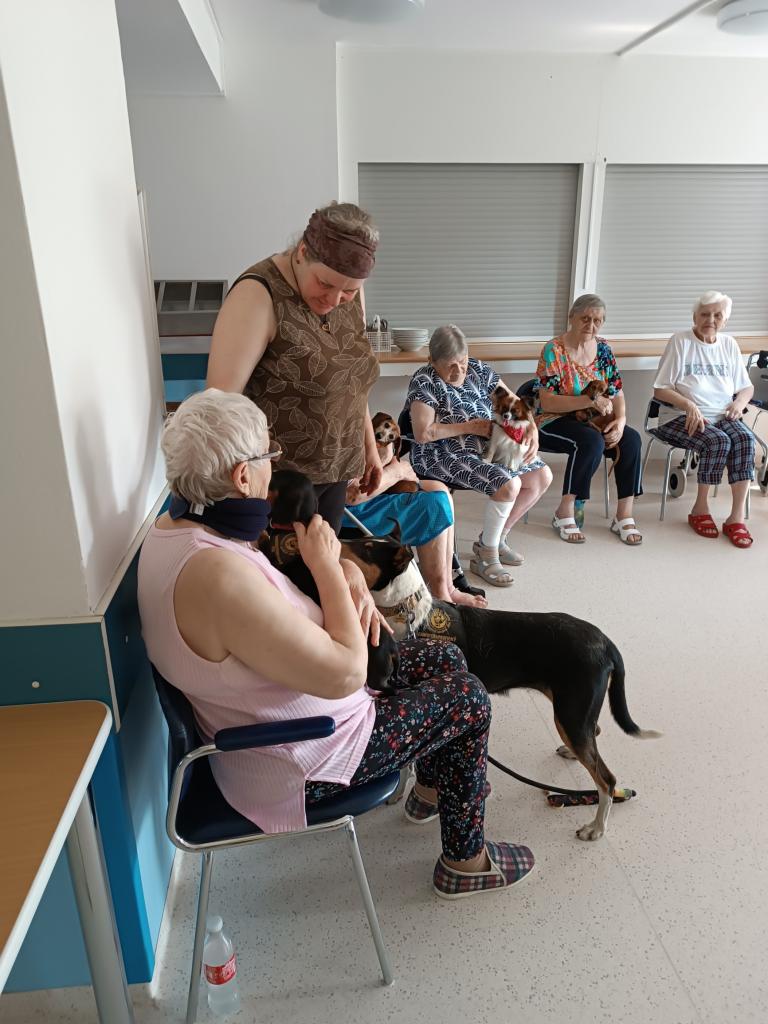 Skupinová canisterapie proběhla v početné skupině jak psích kamarádů, tak našich klientů. Z častějších návštěv je zřejmé, že odborně vedená terapie pozitivně působí jak na psychický tak i fyzický stav našich klientů.