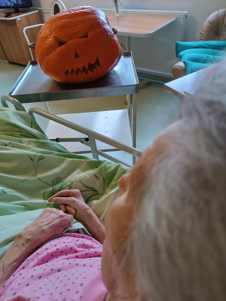 Při individuální smyslové aktivitě s klientkami, tentokrát na pokojích, jsme se věnovali tématu dýně, vyřezávání dýní a její zpracování a využití jak v kuchyni tak i při výzdobě.