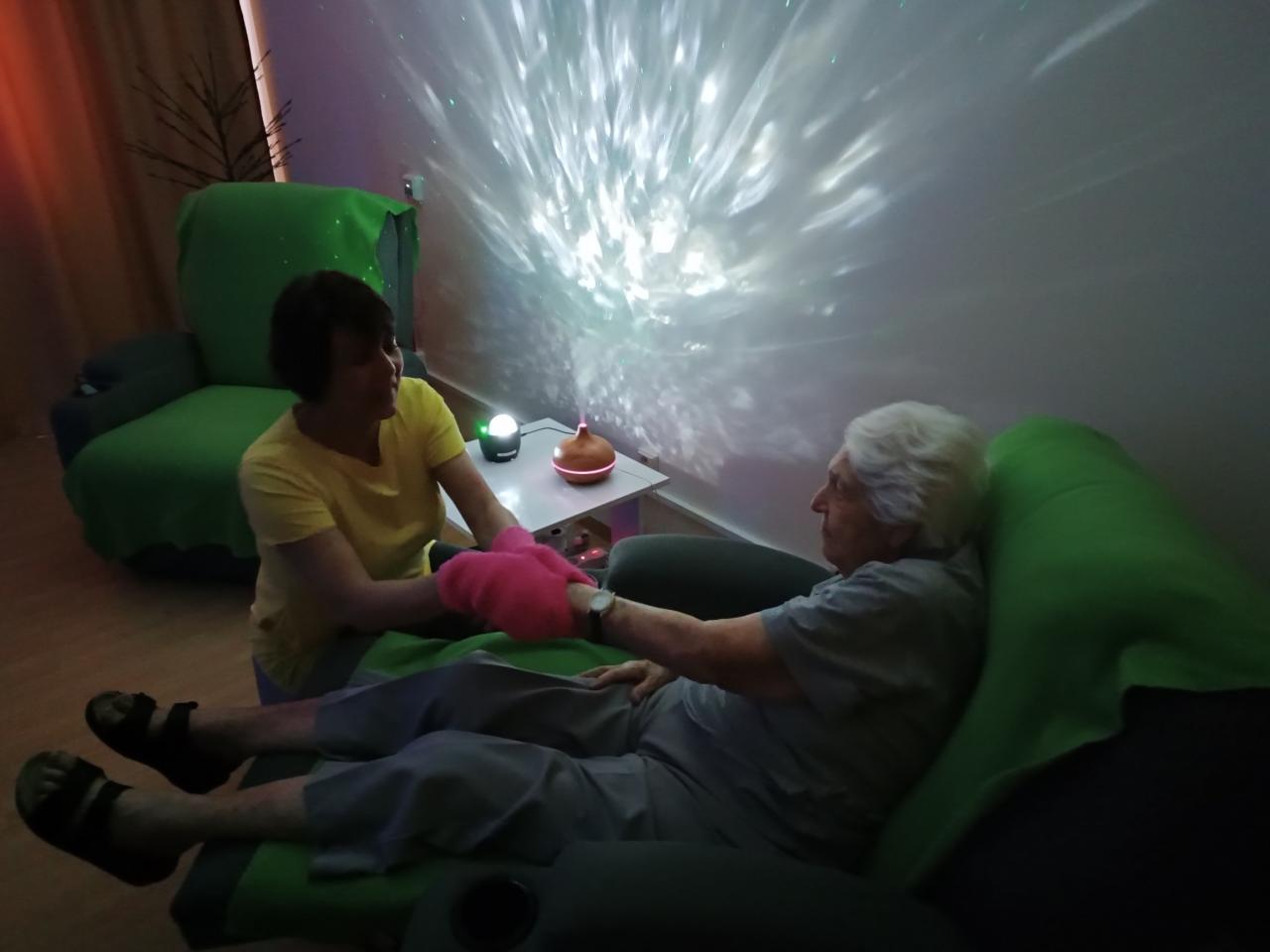 Pobyt v relaxační místnosti s využitím masážního křesla, vybranou vonnou esencí, hudbou a světelnými doplňky si první listopadový den užívali naši klienti při snoezelen terapii. Odcházeli se slovy, že to byl "balzám na duši".