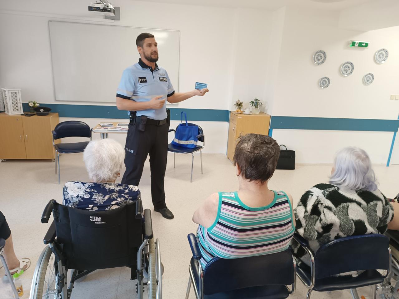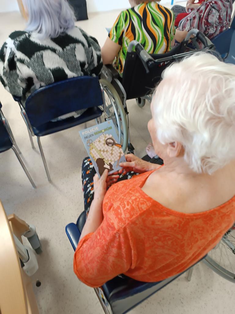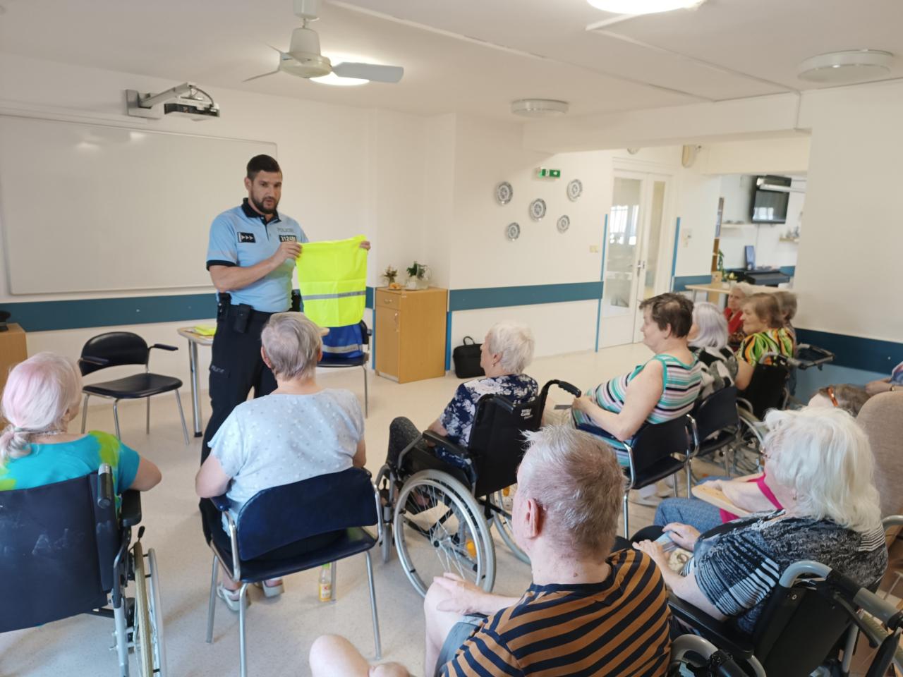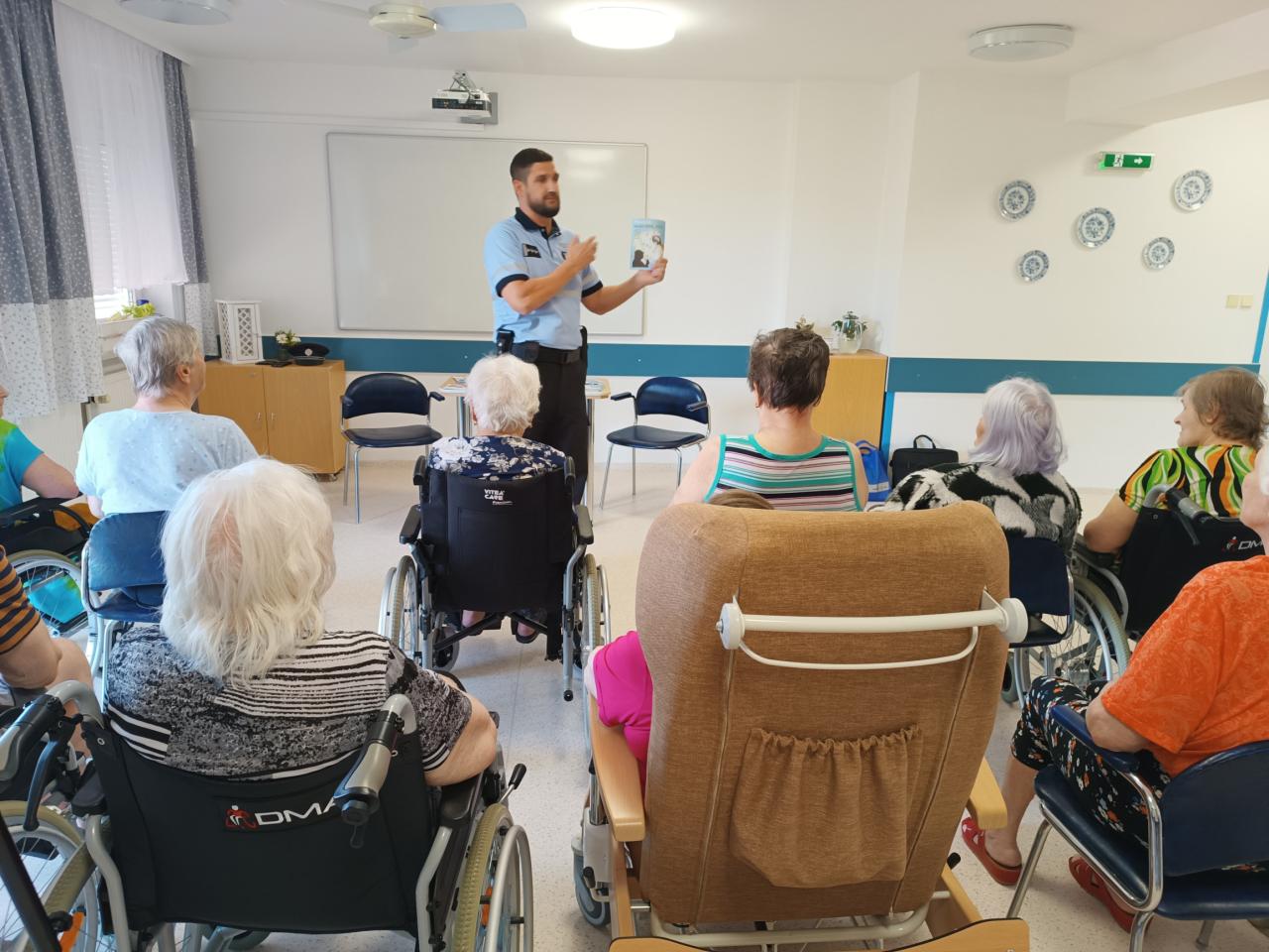 Interaktivní beseda s příslušníkem policie ČR, proběhla dnes dopoledne v jídelně našeho domova. Obsahem bylo především povídání a užitečné rady, které vybízejí naše klienty k větší obezřetnosti a bezpečnosti.
