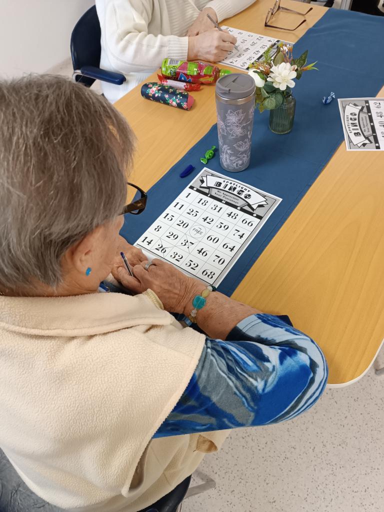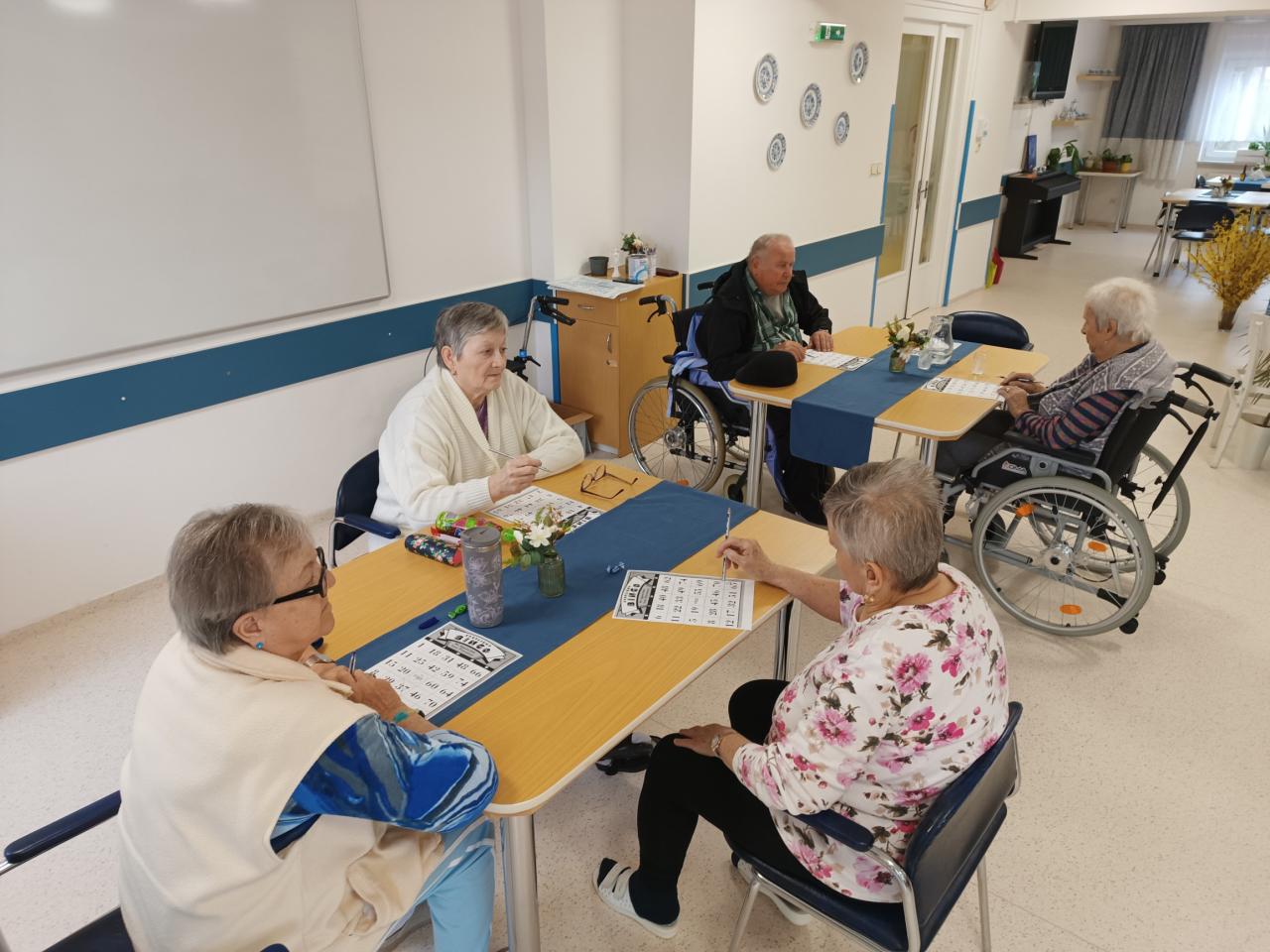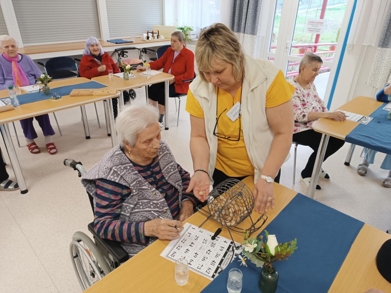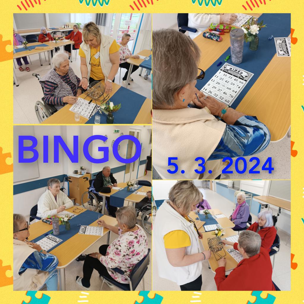 Společenská hra Bingo vyplnila klientům dnešní dopoledne. Všichni se zapojili do losování čísel a netrpělivě čekali na to své. Pozornost a soustředění je nedílnou součástí této oblíbené hry.