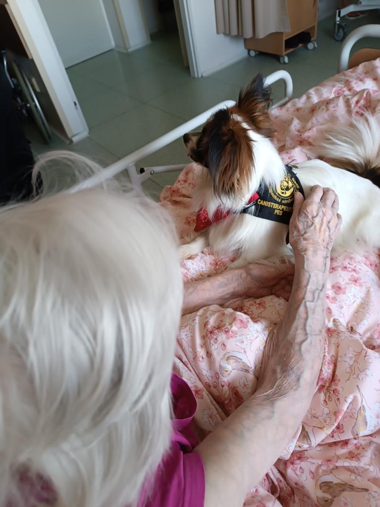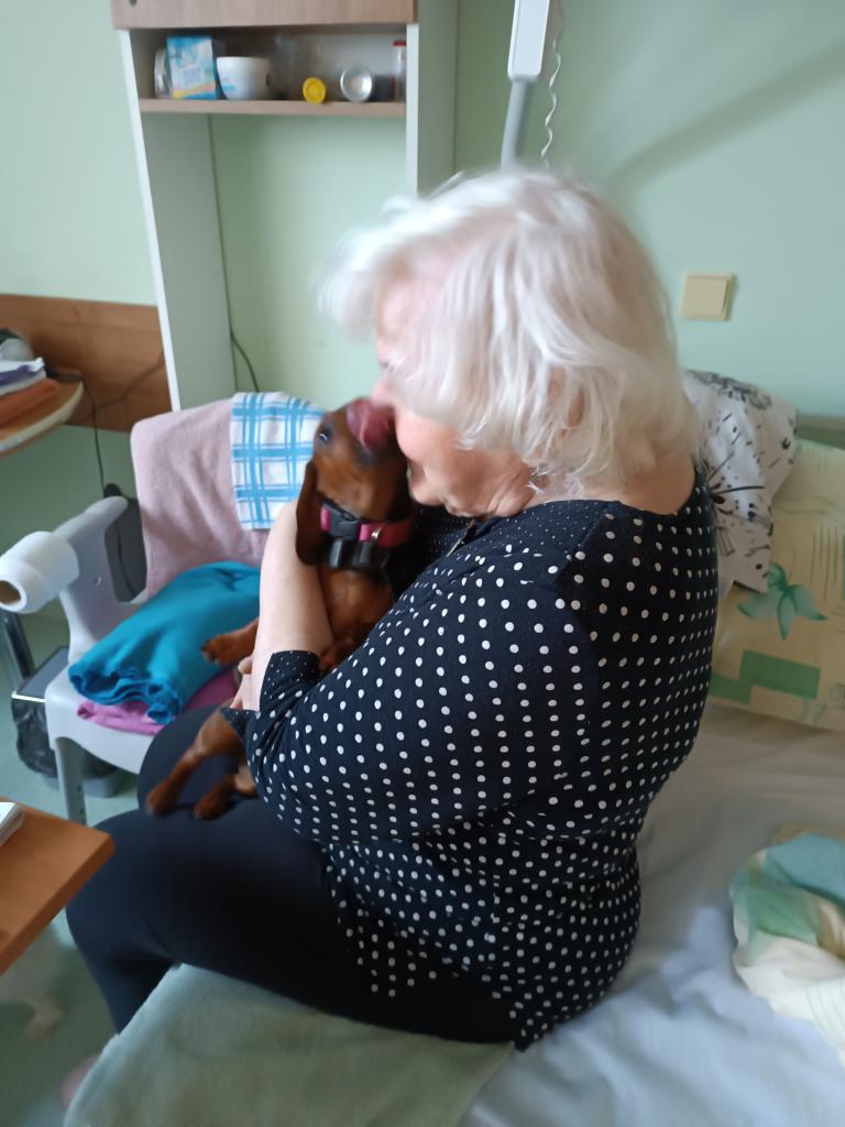 Dopoledne se potěšili se psy klienti na pokojích. Pobíhající a dovádějící jezevčíci vykouzlí vždy úsměv na tvářích. Pohlazení a pomazlení se psy je příjemným zpestřením pro naše klienty.