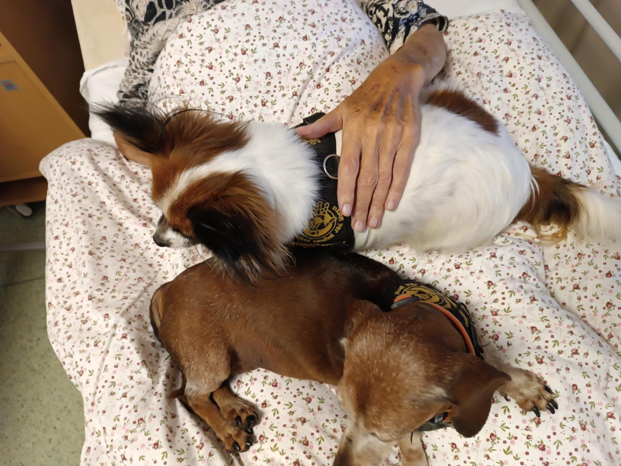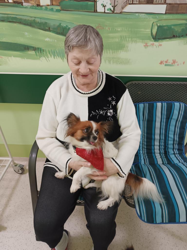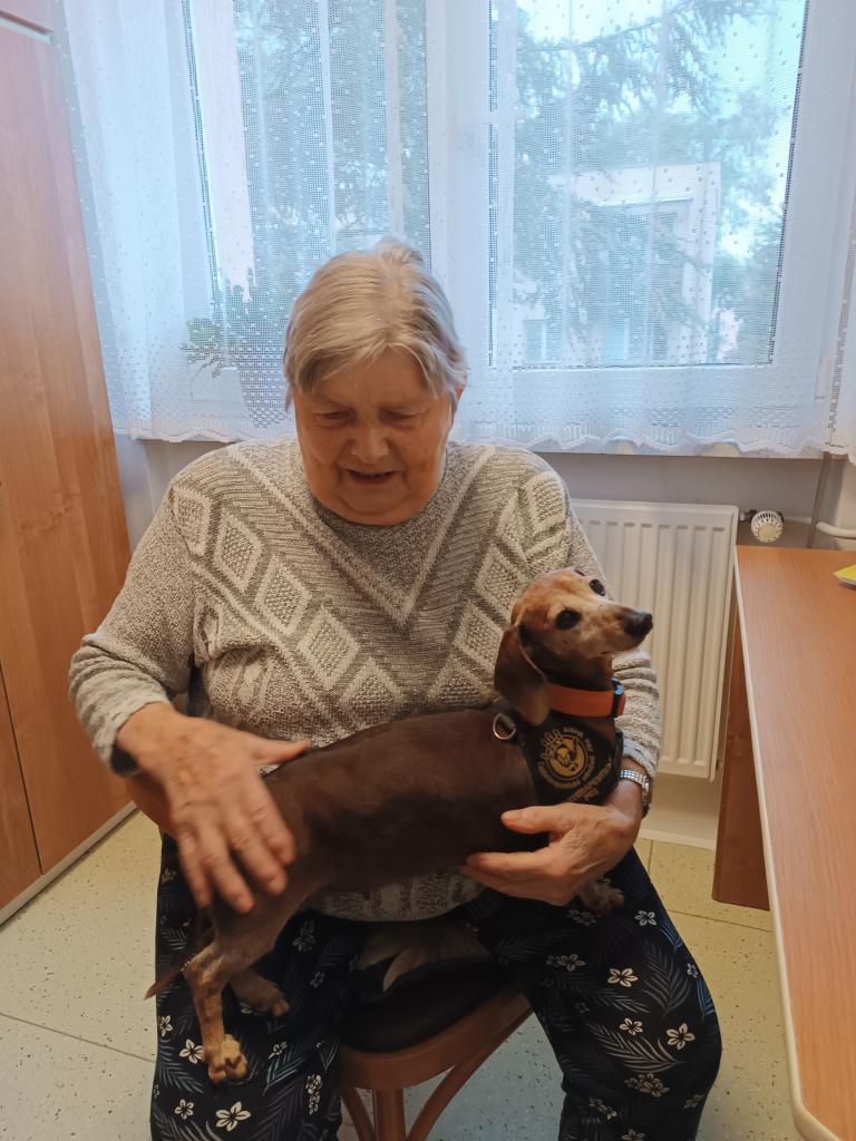 Dopoledne naše klienty potěšila svou návštěvou paní Bílková a její smečka pejsků. Přítomnost malých chlupatých „terapeutů“ našim klientům vždy rozzáří obličeje a vykouzlí úsměv na tváři. Někteří z klientů mají pro pejsky nachystané pamlsky.