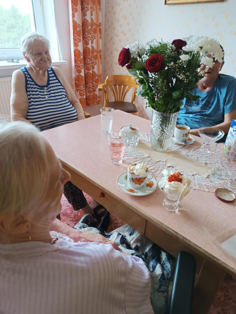 S dalšími oslavenci narozenými v tomto měsíci jsme se setkali odpoledne, abychom oslavili jejich narozeniny. Nechyběla káva, občerstvení, přáníčka a malé dárky a taky dobrá nálada.