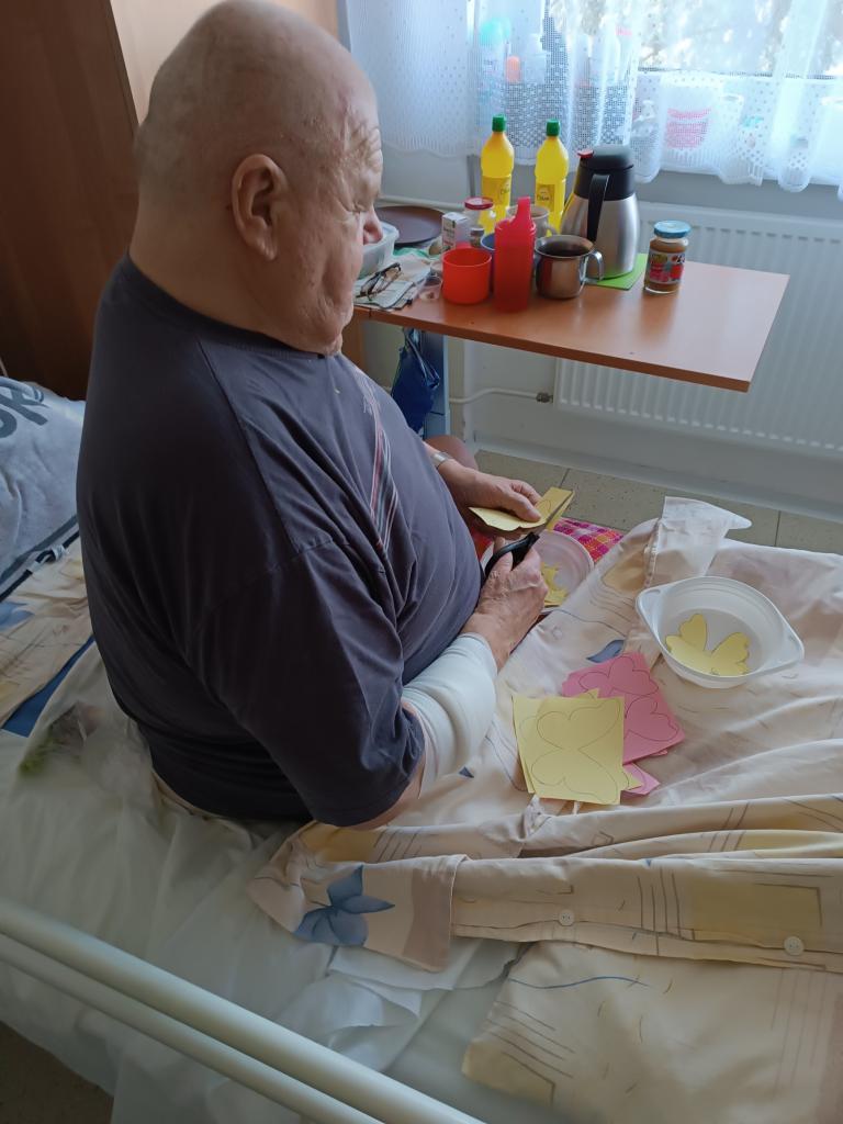 Individuální aktivizace na pokojích klientů s přihlédnutím na jejich přání a potřeby probíhala i dnes dopoledne. Někteří klienti relaxovali, jiní se zapojili do letní výzdoby domova. Každý si přišel na své.