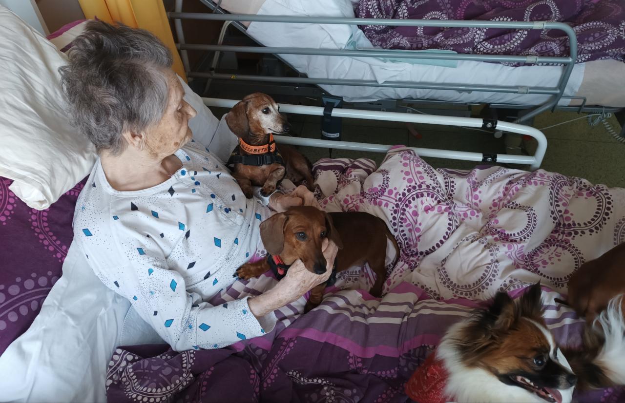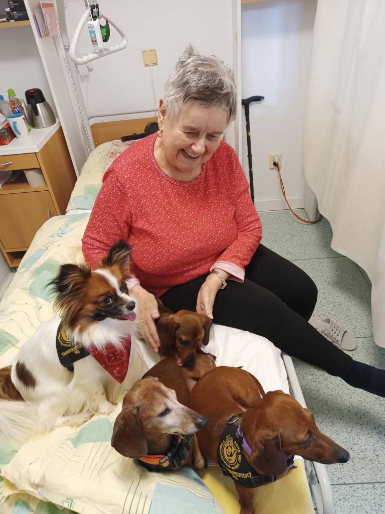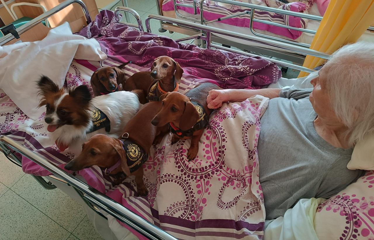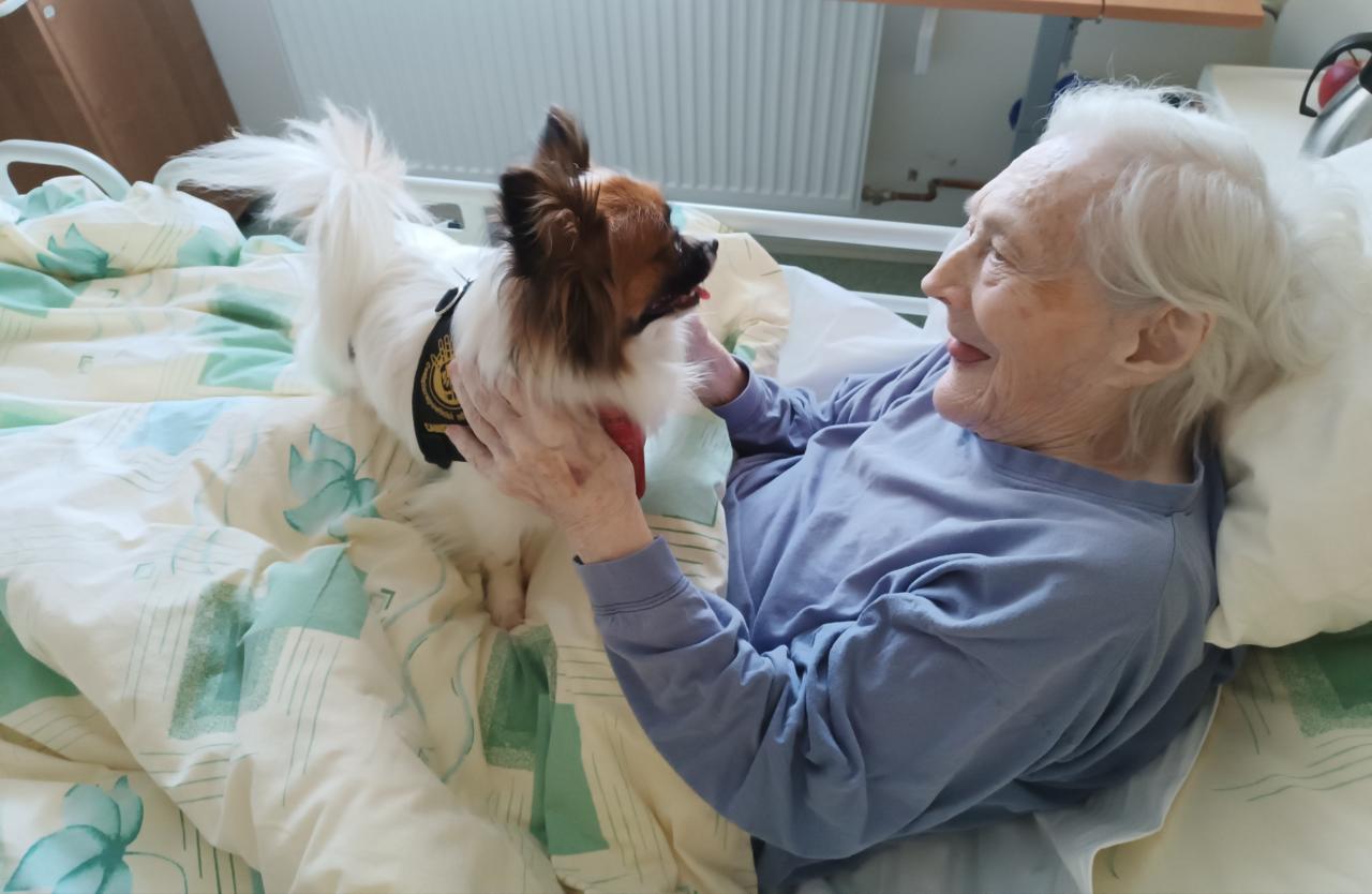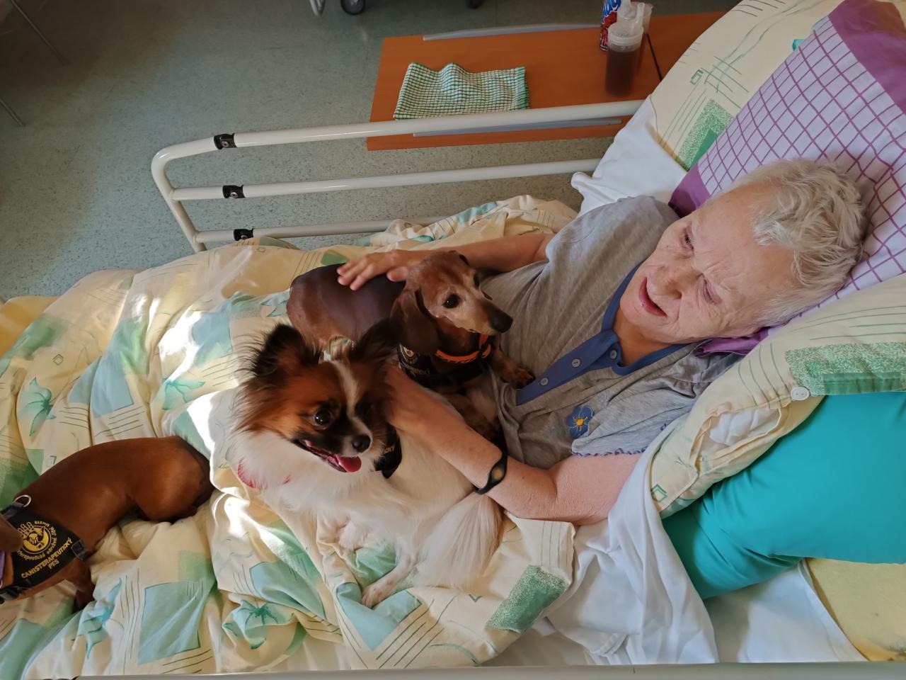 Opět nás navštívila smečka pejsků v rámci canisterapie. Tentokrát pejsci navštívili klienty na jejich pokojích. Projekt je realizován za pomoci Nadačního fondu Českého rozhlasu ze sbírky Ježíškova vnoučata. Děkujeme mnohokrát.