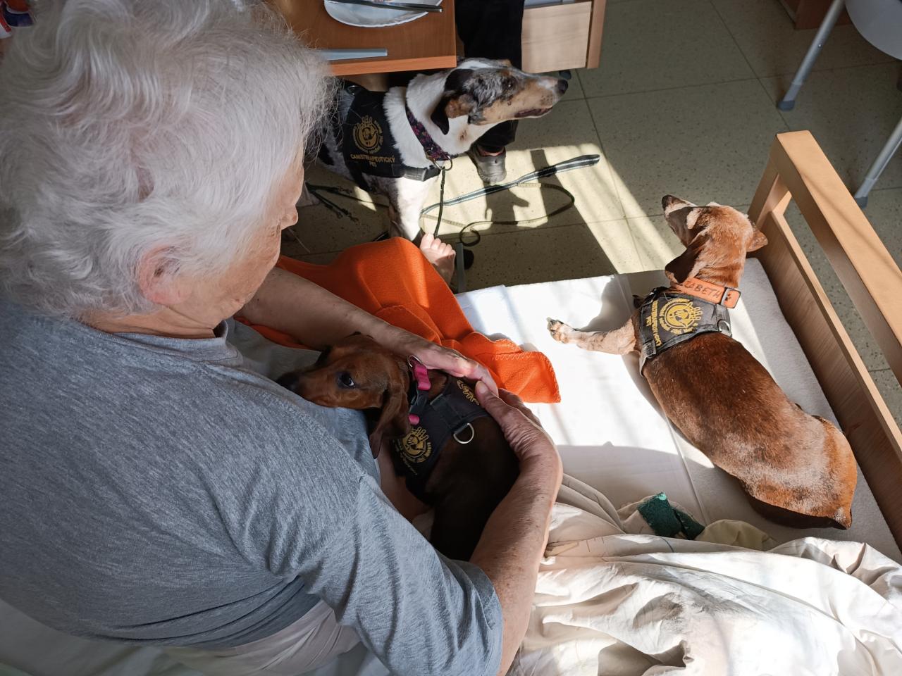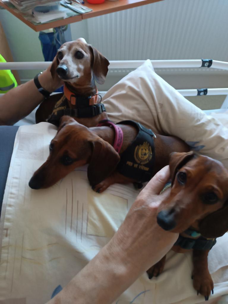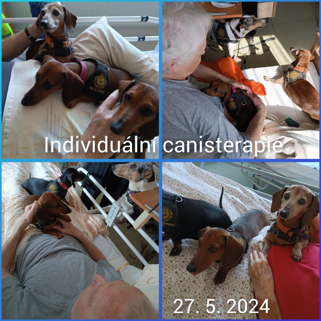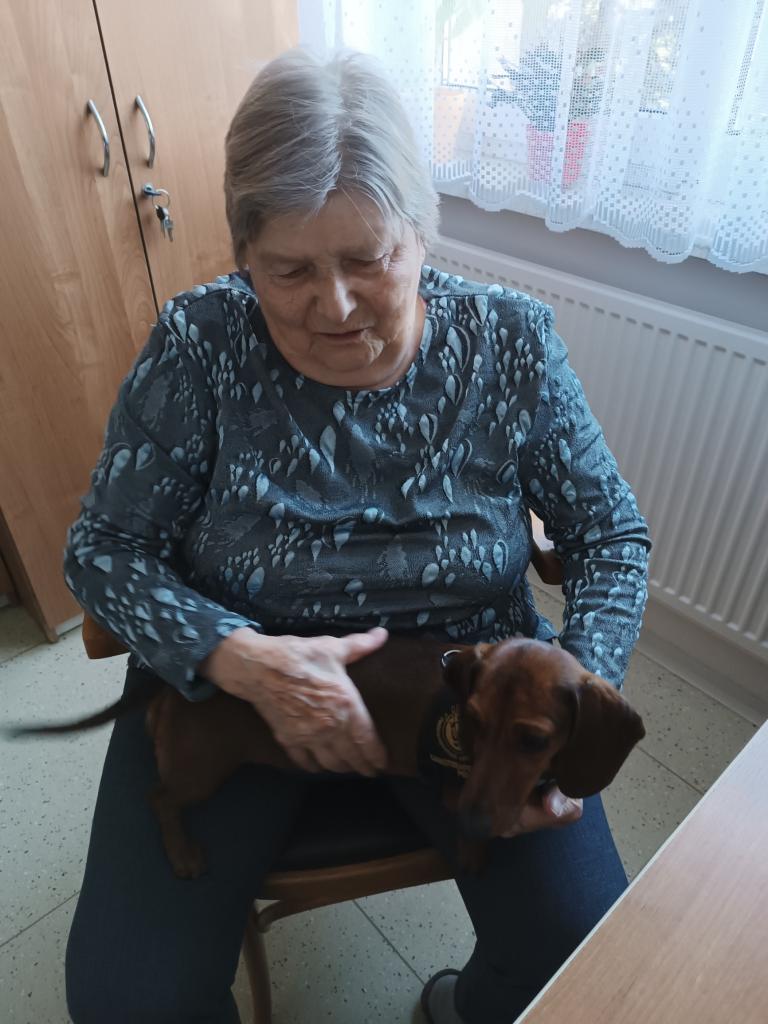 Klienty na pokojích opět potěšila návštěva jezevčíků a hladkosrstá kolie v rámci canisterapie. Jejich návštěva všem vykouzlila úsměv na tváři.