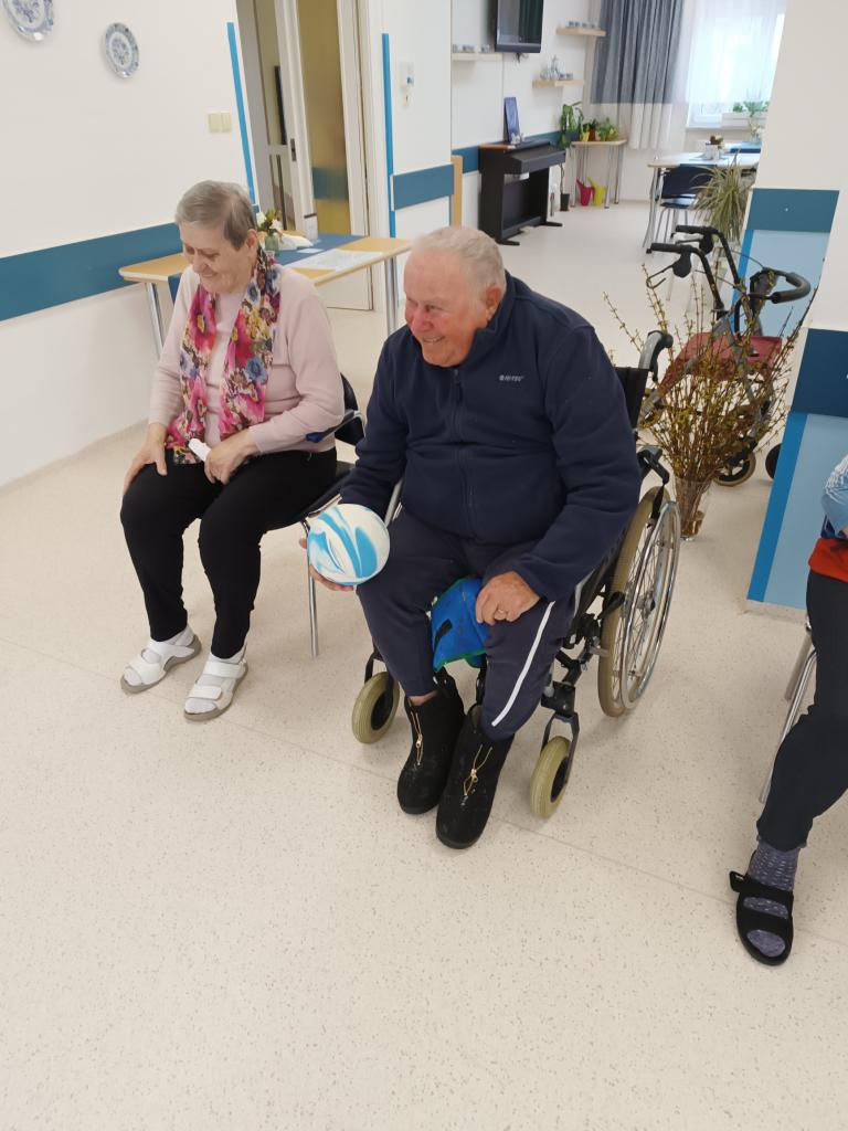 Hra kuželky procvičila u našich klientů nejen obratnost a motoriku, ale zapojili i hlavu při počítání sražených kuželek. O dobrou náladu nebyla nouze.