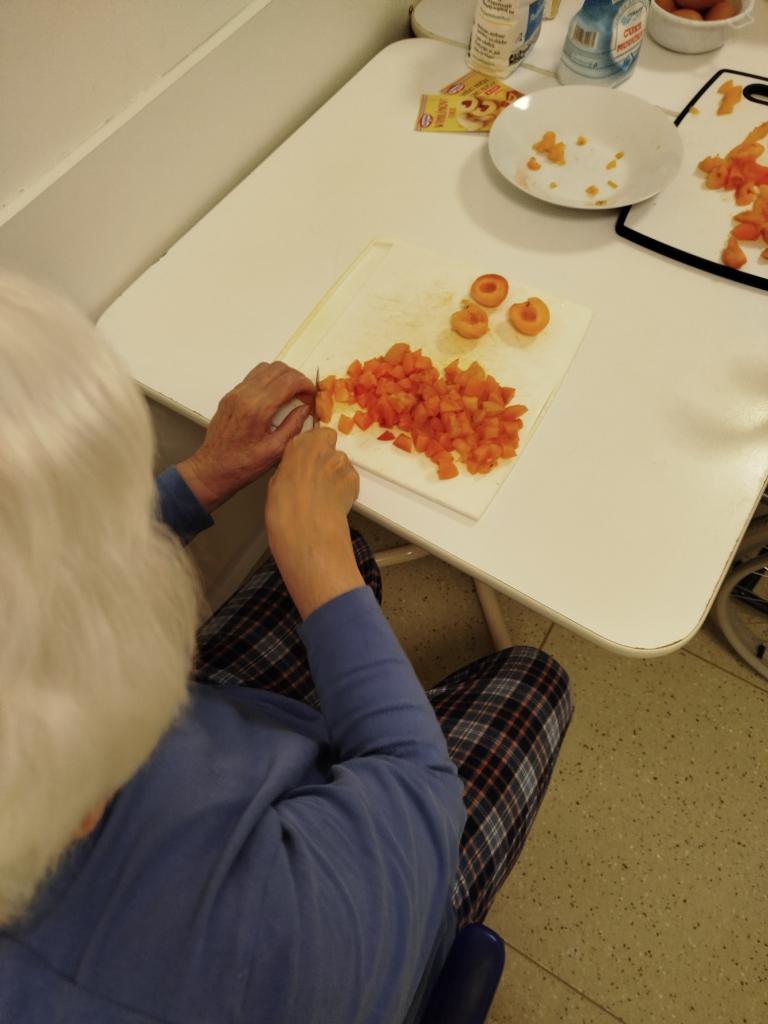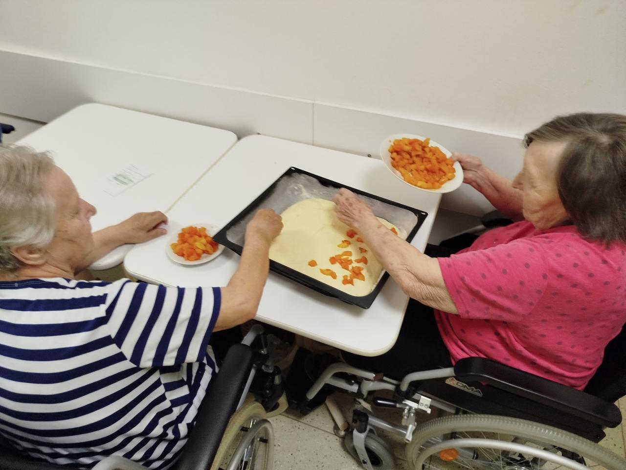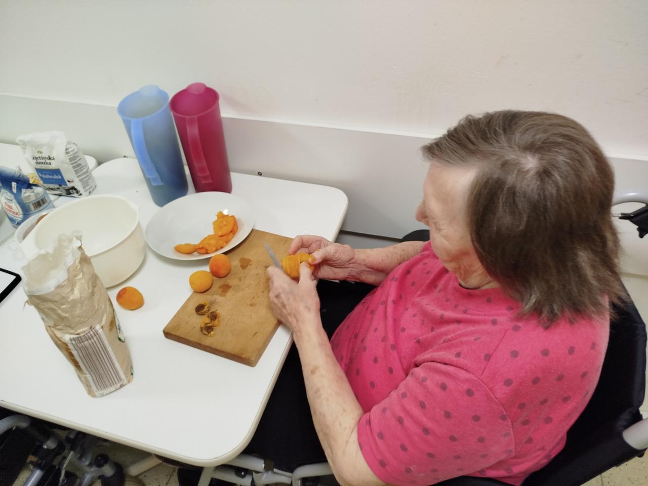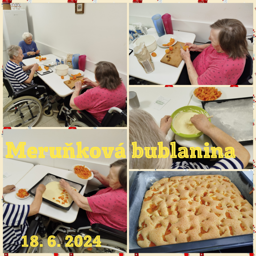 Zůstalo nám ještě několik meruněk, tak jsme se shodli, že bychom si dali meruňkovou bublaninu, kterou jsme si dopoledne upekli. Meruňky jsme tak zpracovali všechny a na buchtě si pochutnáme u společného posezení s kávou.