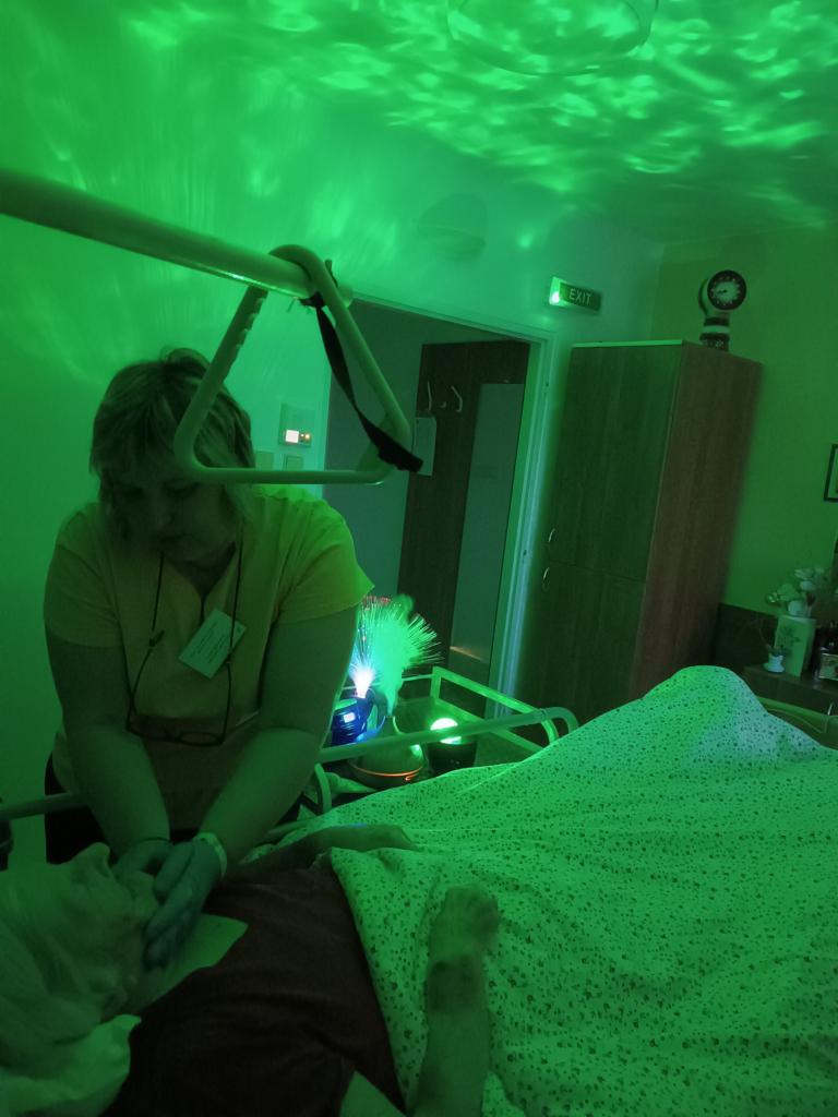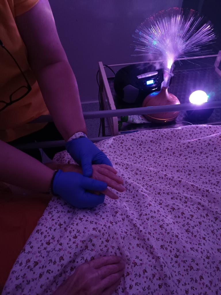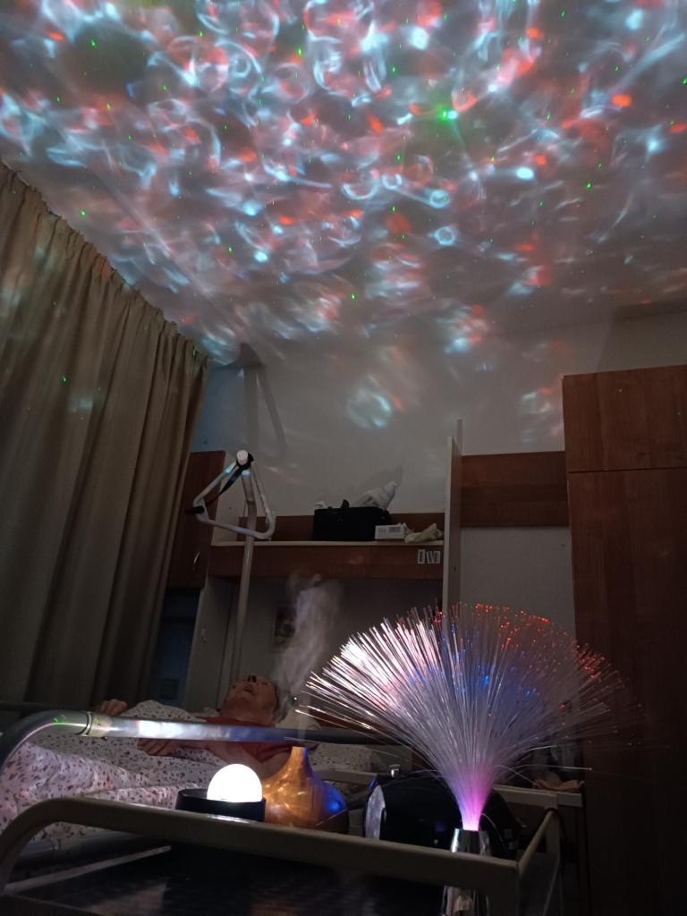 I klientům na pokojích se snažíme zpříjemnit atmosféru relaxačními masážemi v doprovodu a použitím prvků ze snoezelenu jako je světelná obloha, relaxační hudba a vůně z aromalampy.
