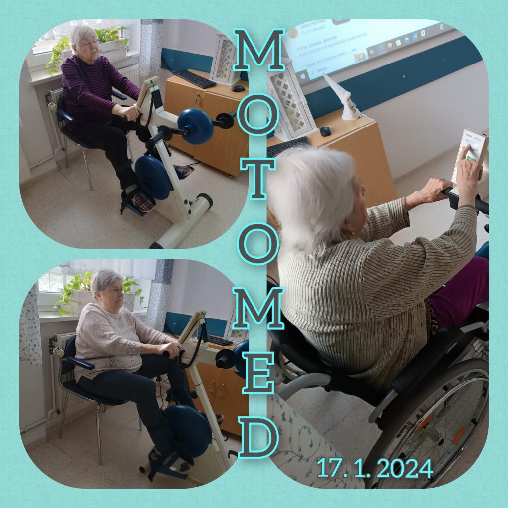 Motomed je pohybový přístroj poháněný motorem simulující jízdu na kole. Díky pohybu na přístroji dochází ke kompenzaci nedostatku pohybu a udržení stávající hybnosti našich klientů.