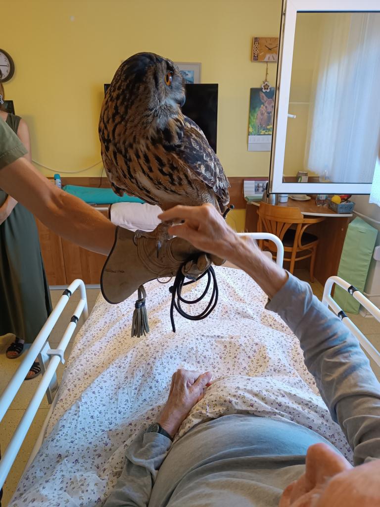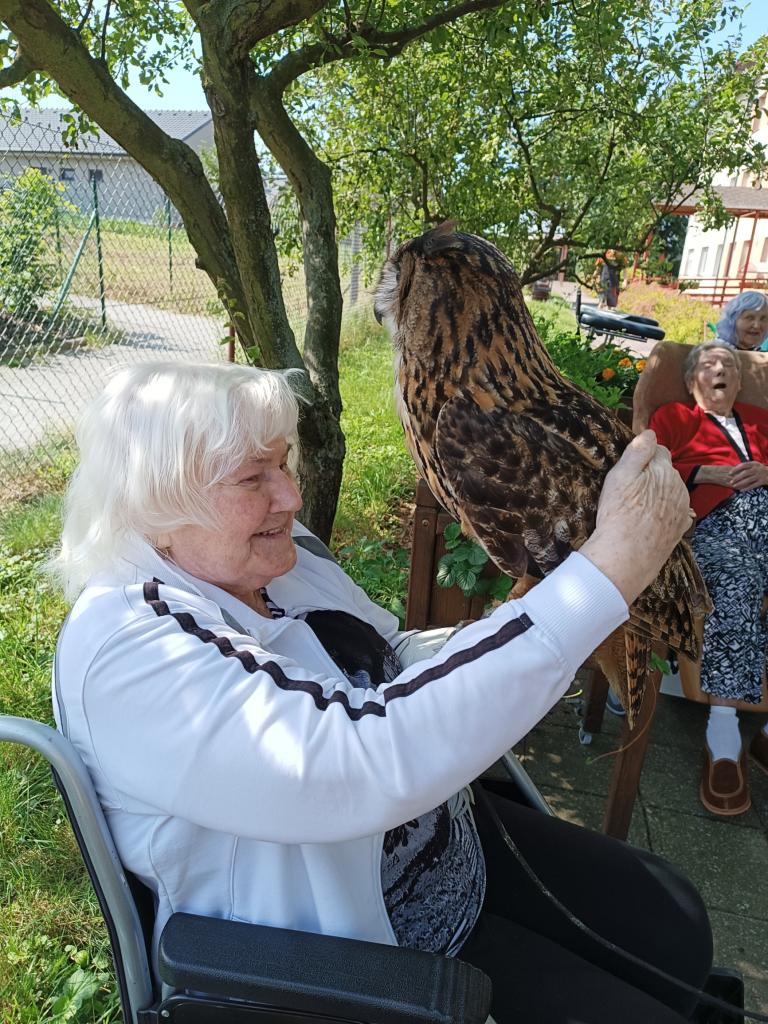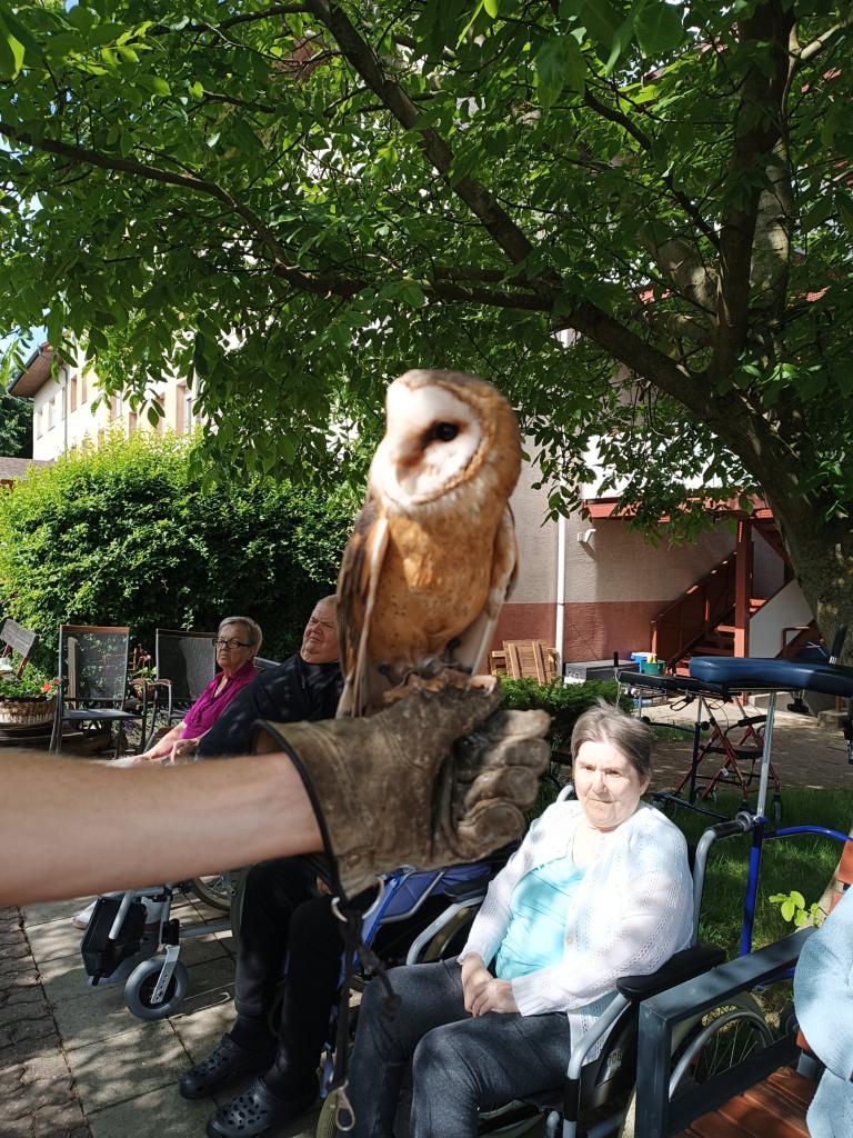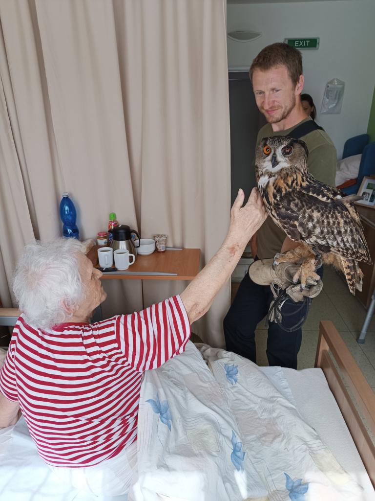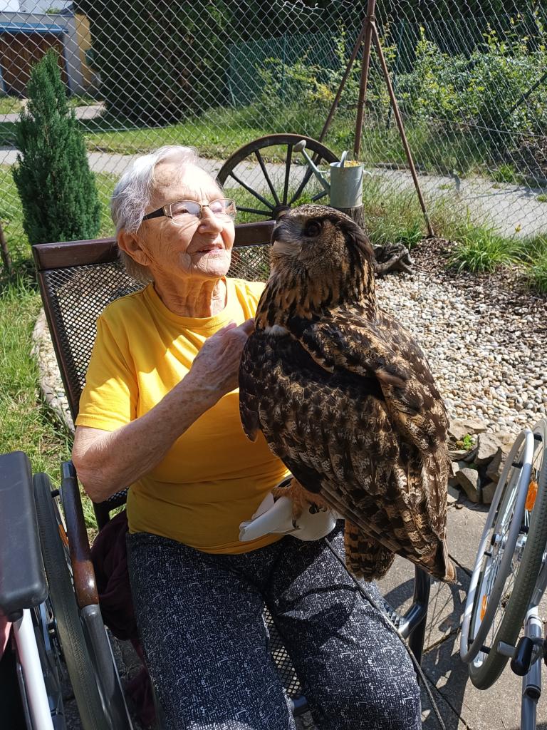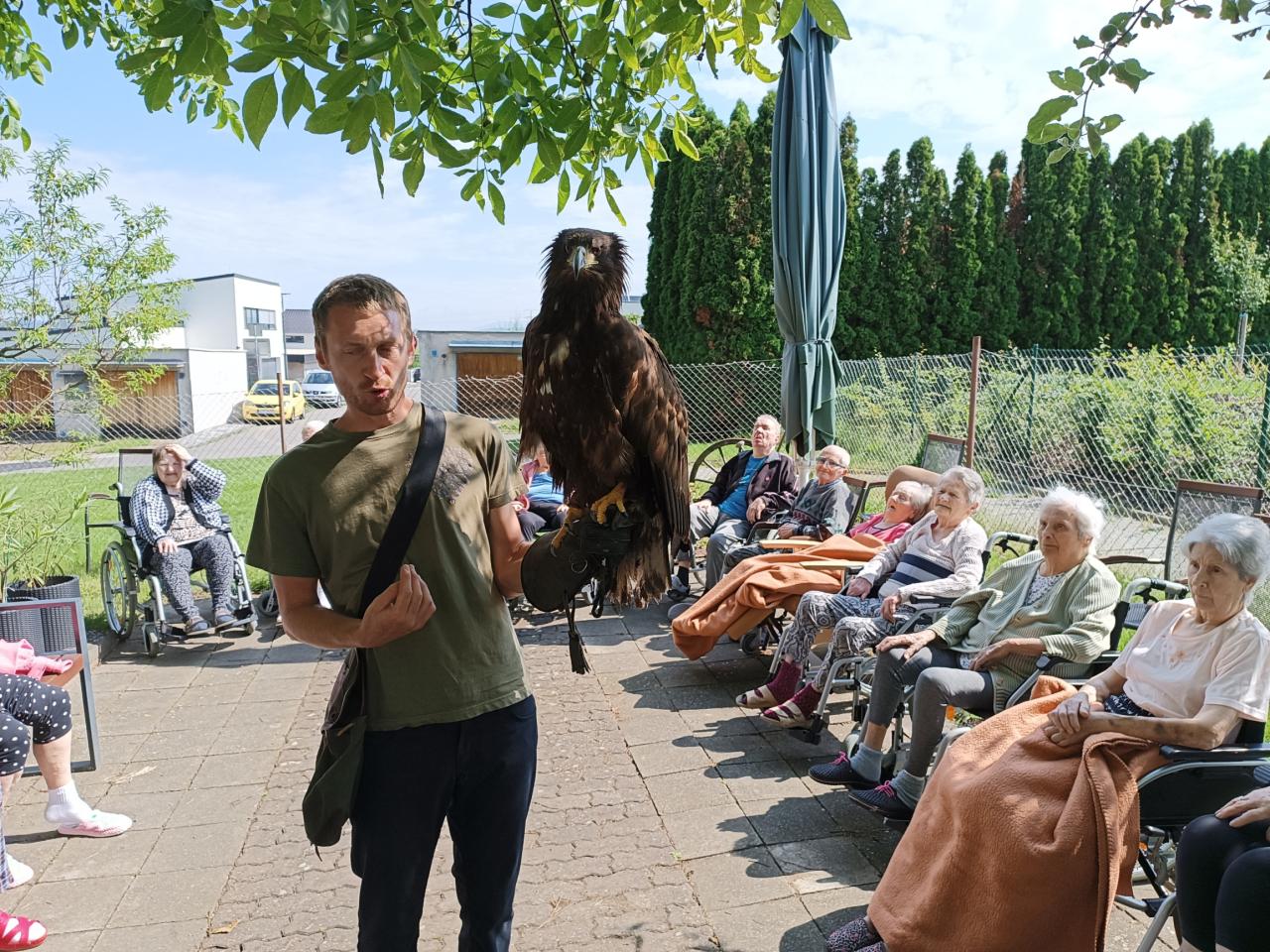 Dopoledne si naši klienti užili na zahradě, kde obdivovali ukázky sokolnicky vedených dravců. Díky Ježíškovým vnoučatům jsme mohli sledovat káně, orla nebo raroha velkého v akci, což byl pro klienty nezapomenutelný zážitek.