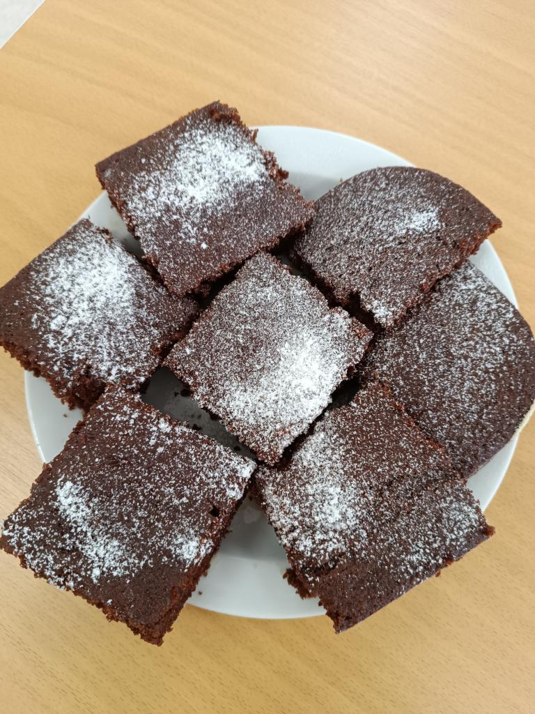 Pečení je vždy spojeno s dobrou náladou. Tentokrát jsme si upekli mramorovou bábovku a kakaový řez, na kterém si klienti pochutnají u odpolední kávy.