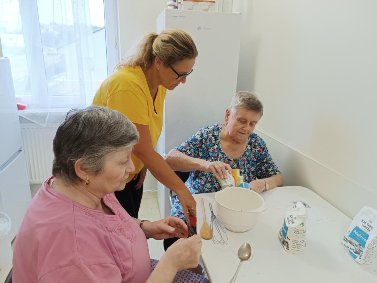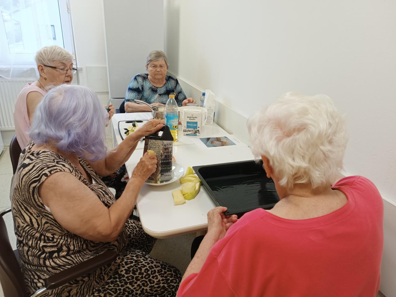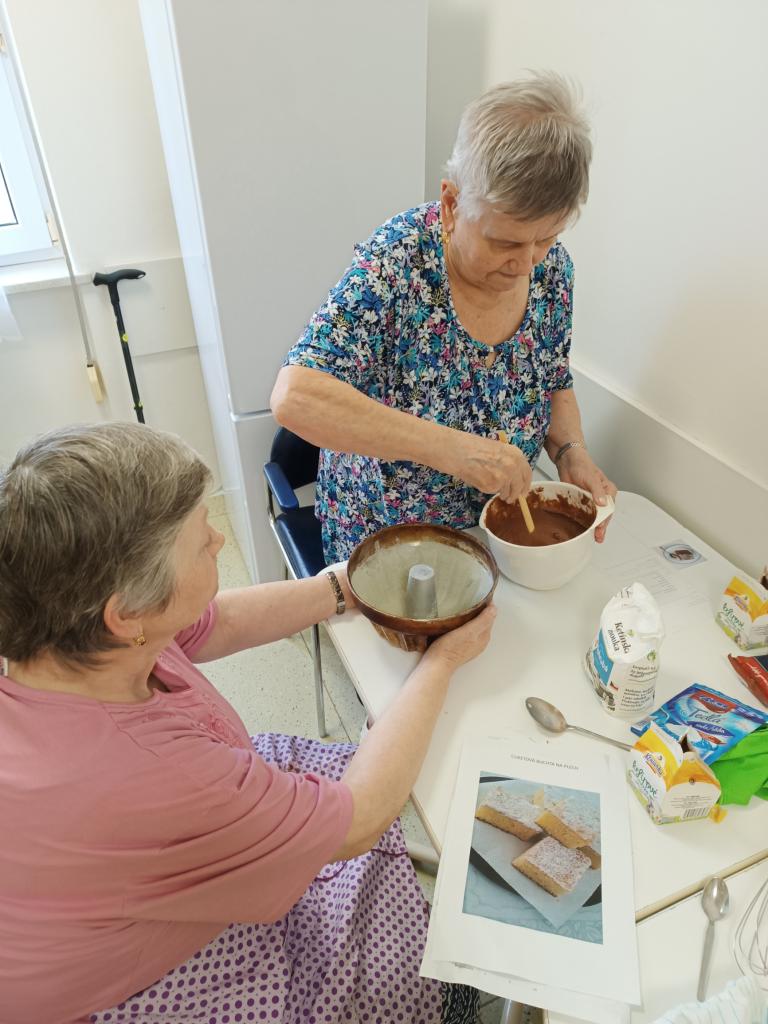 Dopoledne jsme s klientkami upekli dvě buchty. S první skupinkou cuketovou buchtu a druhá skupinka upekla kefírovou bábovku. Na buchtách si pochutnají všichni při společném posezení u písniček a taky klienti na pokojích.