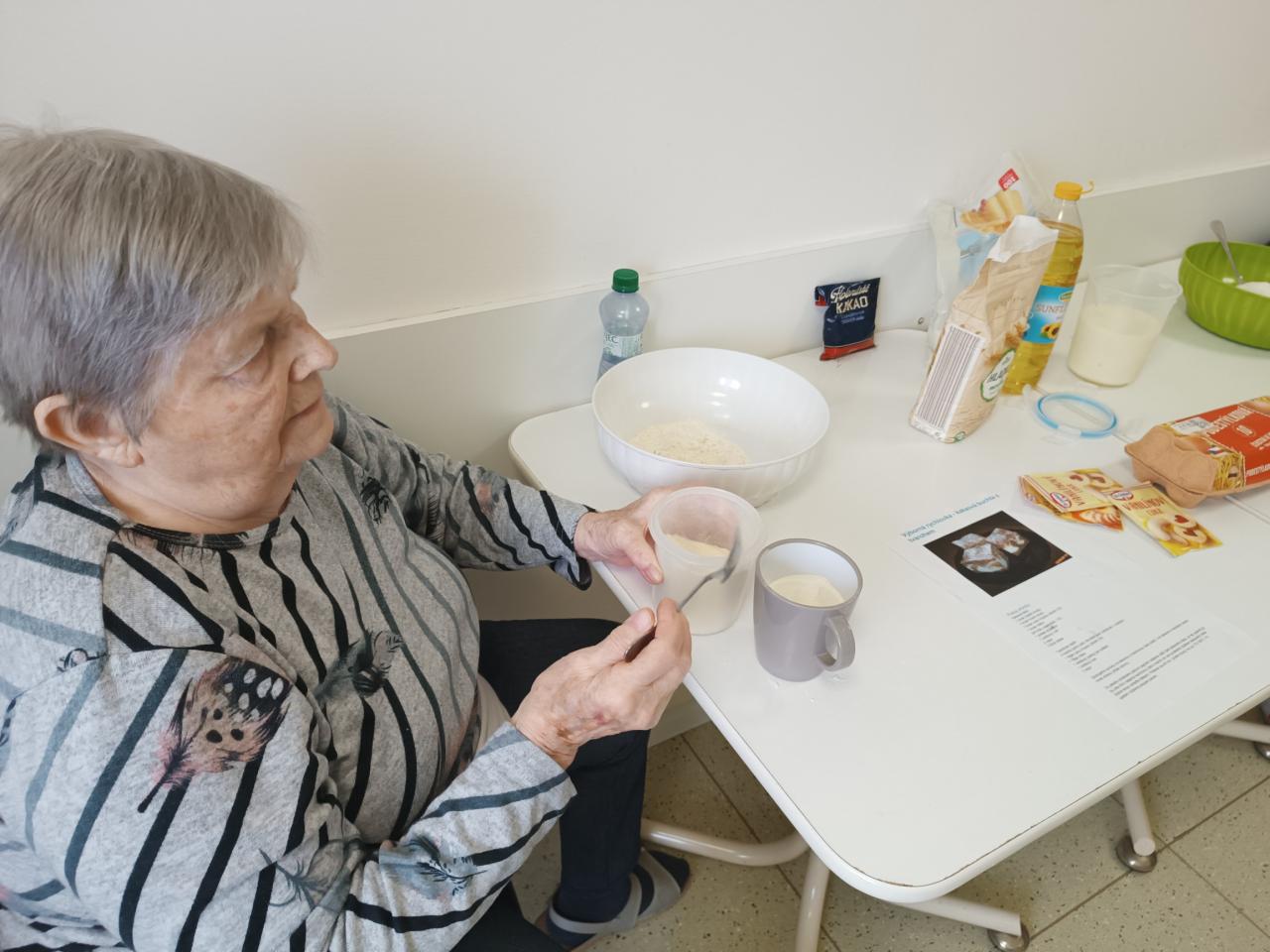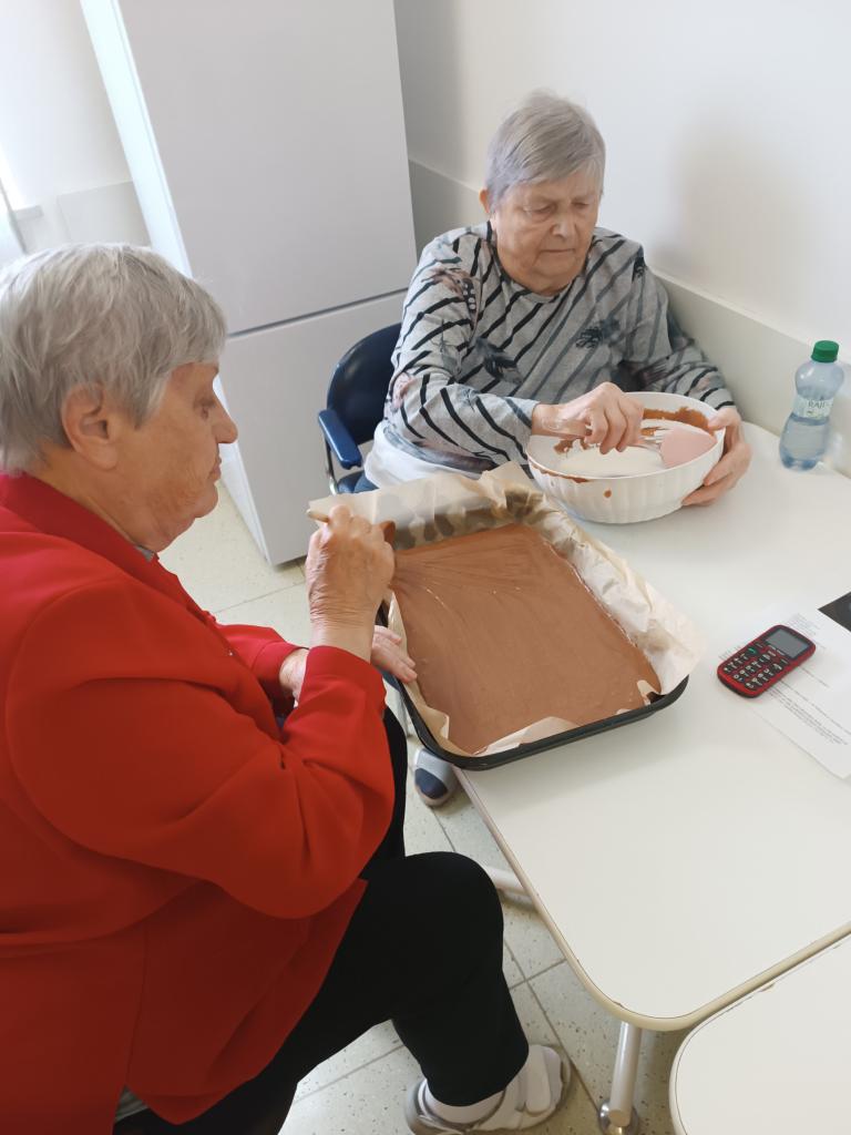 Klientky dopoledne upekly dvoubarevnou tvarohovou buchtu, na které si pochutnají nejen klienti na zítřejší oslavě narozených v květnu.