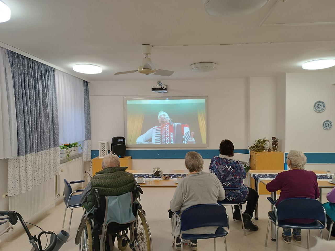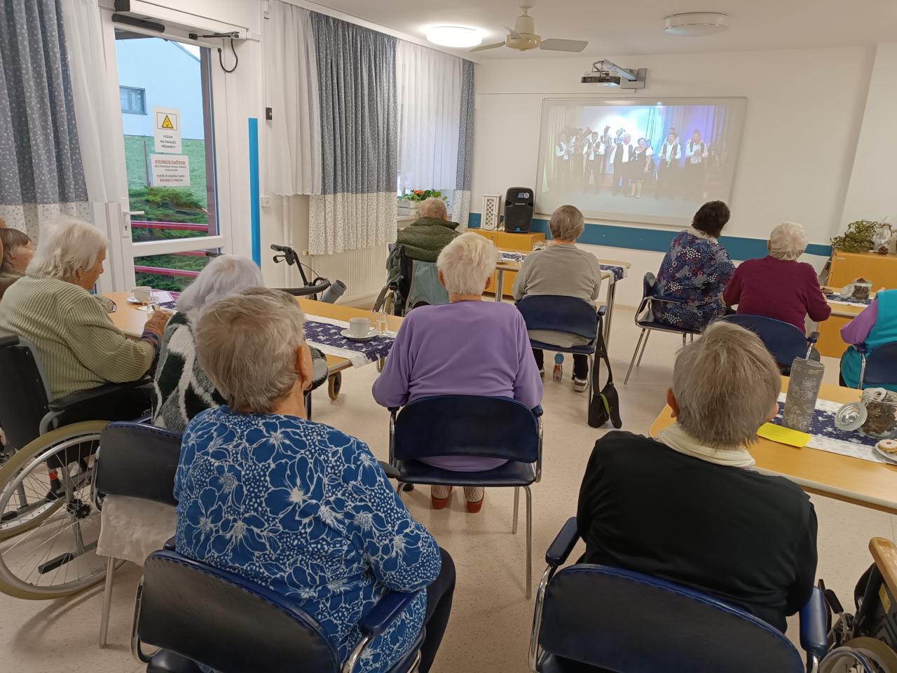 Dopoledne jsme se sešli na oblíbené společné aktivitě, kde si každý z klientů mohl nechat zahrát svou oblíbenou písničku a taky si společně zazpívat.