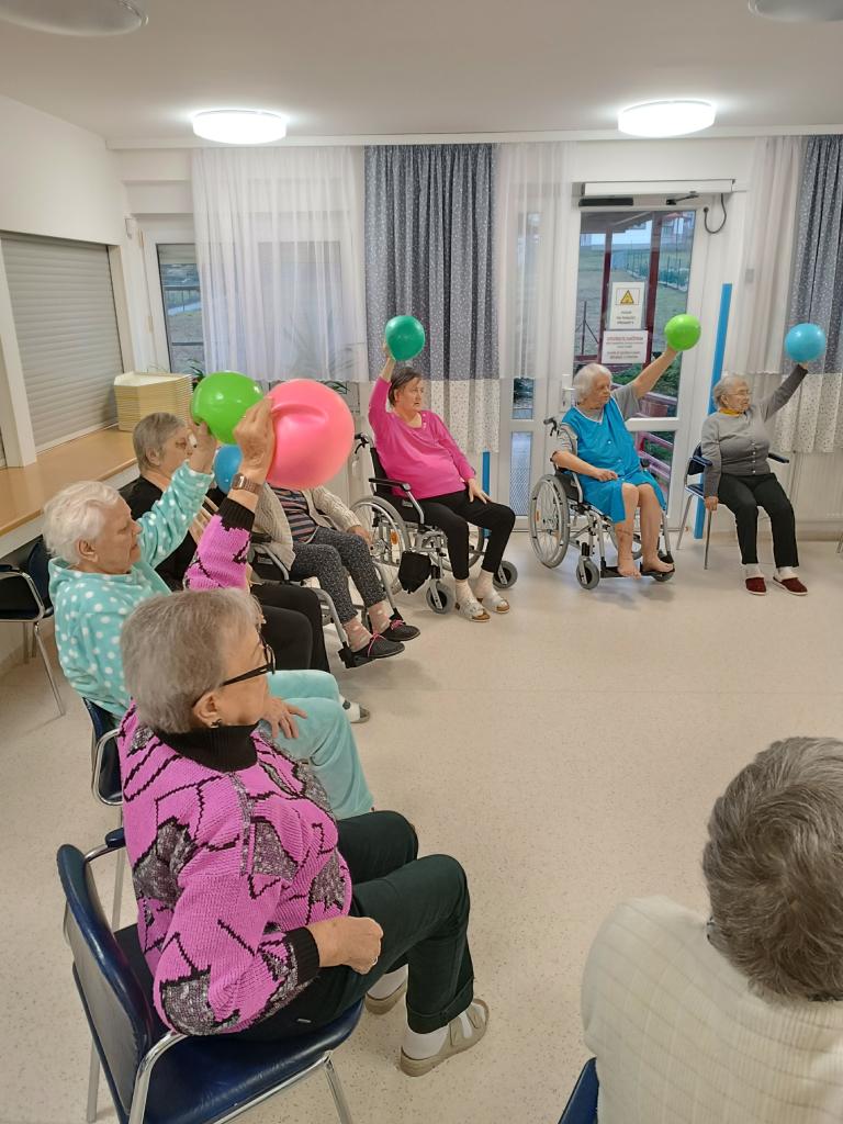 Se sokolským heslem "Ve zdravém těle, zdravý duch" jsme si dnes společně zacvičili. Klienti zvládli rozcvičku, posílení svalů pomocí overbalu a kdo chtěl využil jízdu na motomedu. Loučili jsme se písničkou.