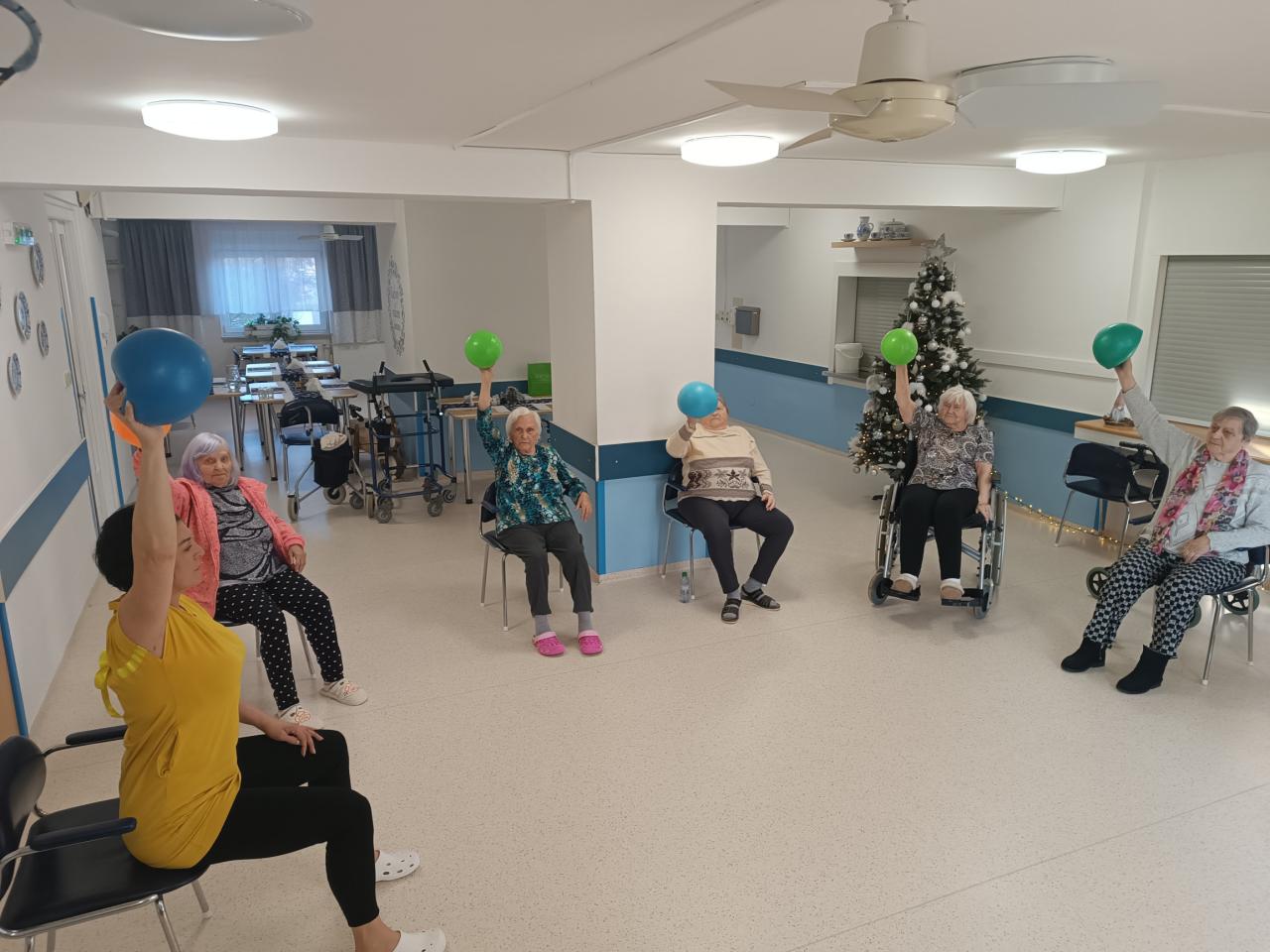 Po vánočních svátcích jsme se sešli, abychom si protáhli celé tělo. Zacvičili jsme si s balóny a kdo chtěl, protrénoval si nohy šlapáním na motomedu.