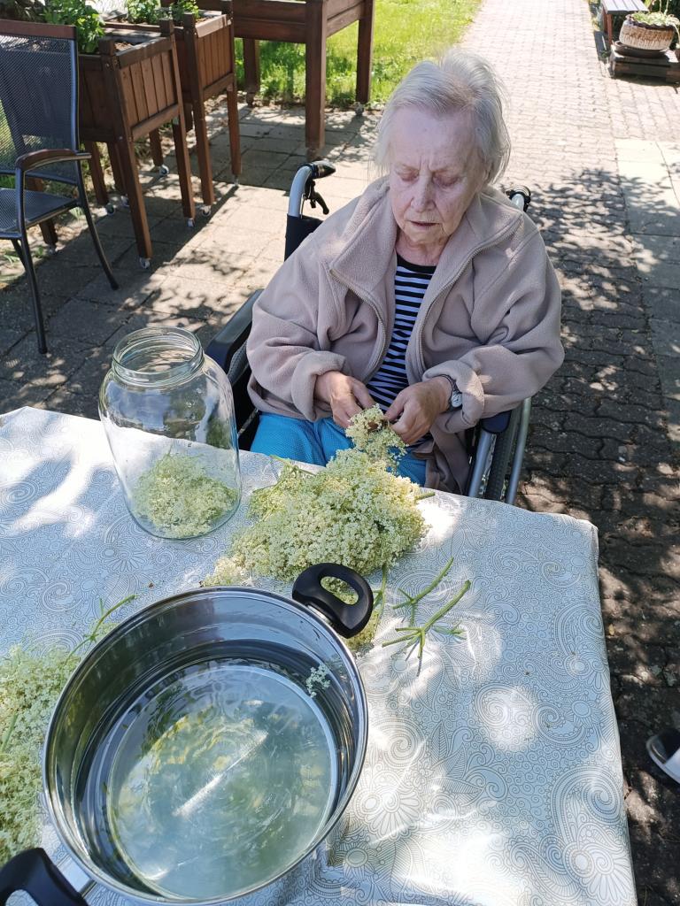 S klienty jsme si připravili bezinkový a mátový sirup, které využijeme na výrobu domácích limonád při společných posezení a setkání.