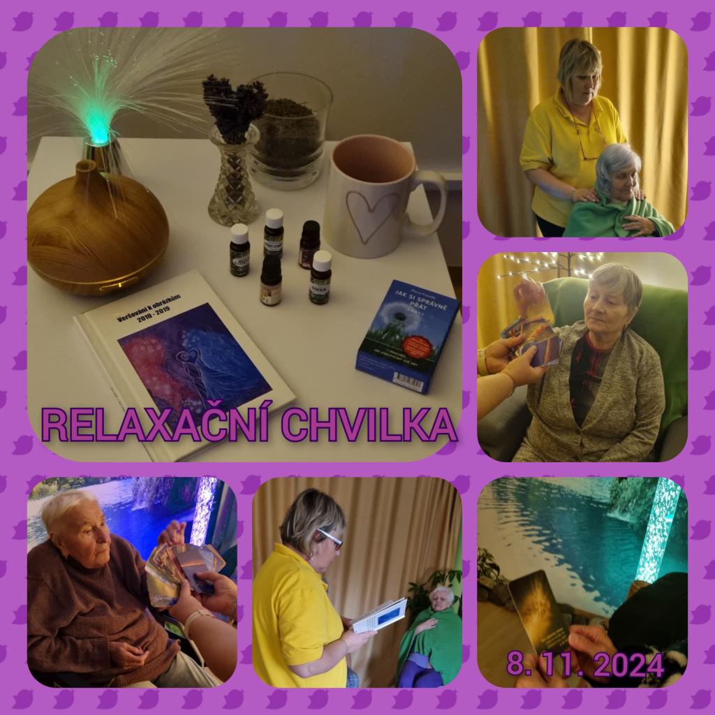 Každý z nás se potřebuje chvíli zastavit a nabrat novou energii. V pátek odpoledne jsme si takovou chvilku dopřáli. Při relaxační hudbě, zábalu na krk a ramena dle výběru vůně a příjemném čtení jsme se společně zrelaxovali.