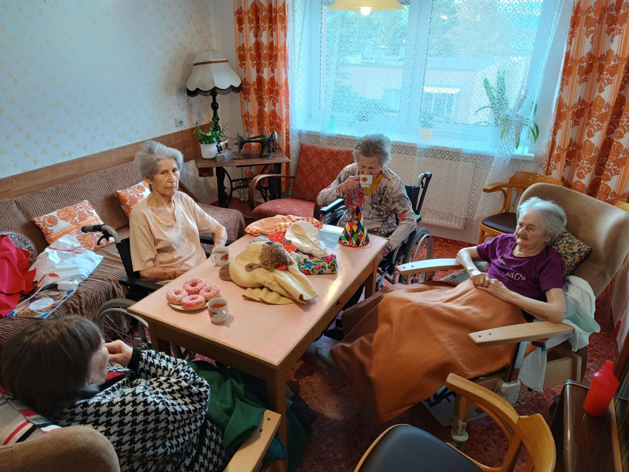 V menší skupince jsme si připomněli Fašank a vše kolem tohoto "svátku". Klientky si vyzkoušely masky, zavzpomínaly na masopustní průvod. Každá si pochutnala na koblihu a na závěr jsme si zazpívali.