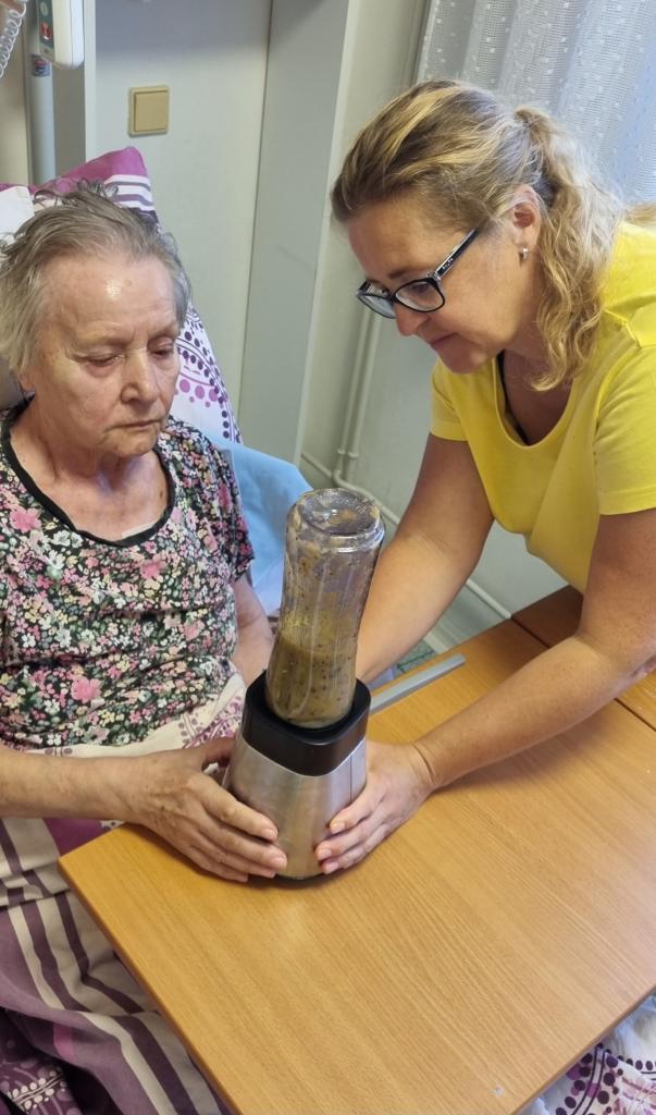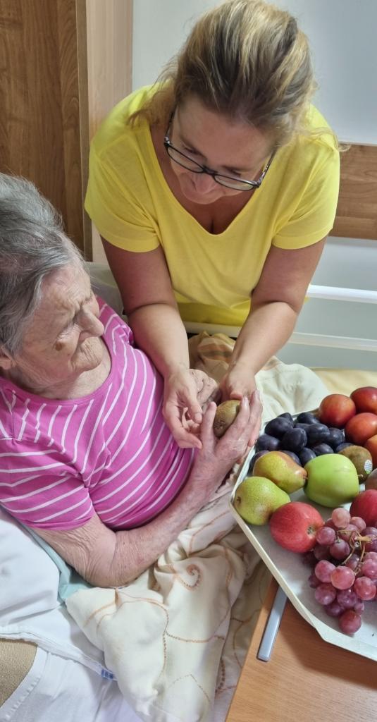 Při smyslové aktivizaci jde o zapojení všech smyslů, které používáme v běžných denních činnostech. Dnes při přípravě ovocného nápoje si klienti mohli vybrat druhy ovoce a připravit si čerstvou šťávu dle své chuti. Na závěr nechybělo zpívání písní o ovoci.