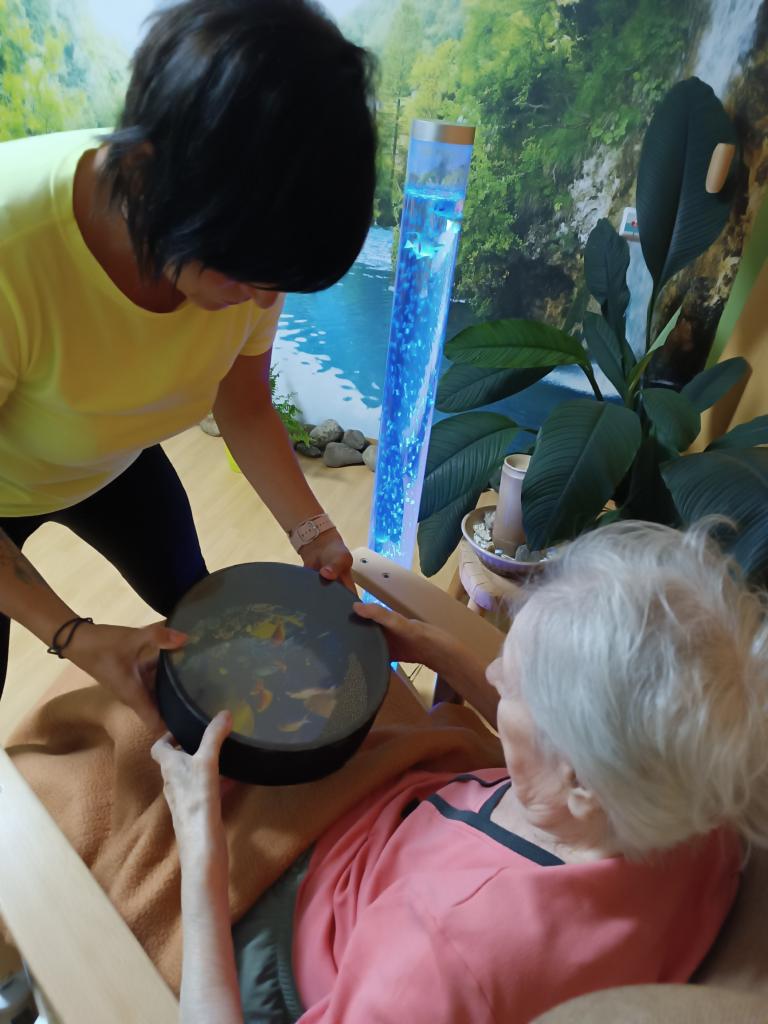 Dnešní téma snoezelen terapie - moře. "Cítit se jako na pláži a všemi smysly si představovat prožitý den u moře".
