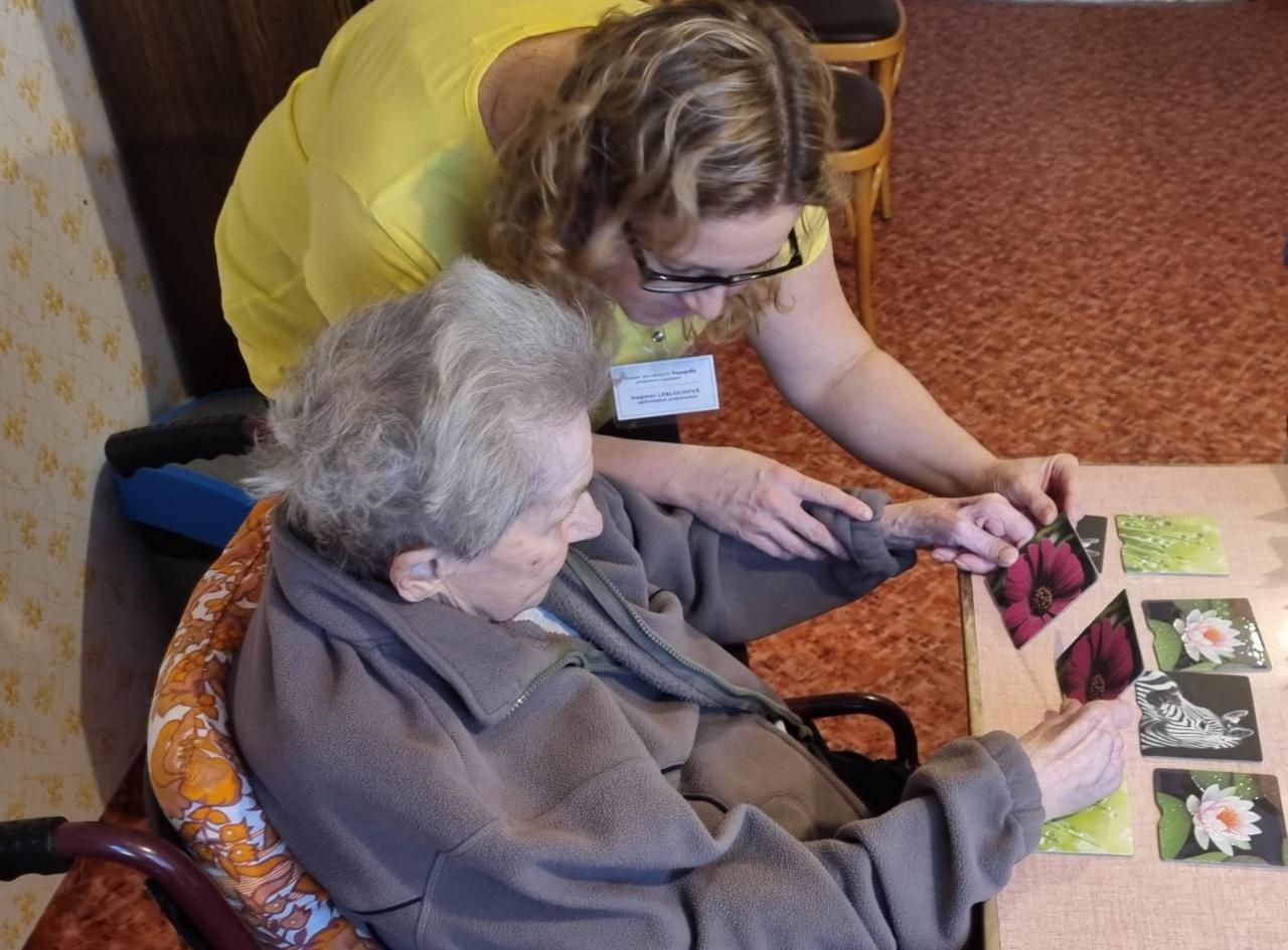 Trénink paměti v menší skupince pro lepší individuální přístup. Aktivizační pracovnice využila pomůcek, které jsou speciálně navrženy právě pro procvičení kognitivních funkcí.
