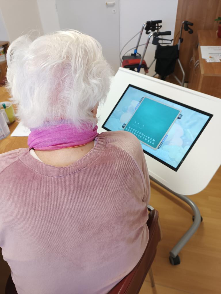 Kvízy na počítání a doplňování vhodných slov, cvičení rukou na koordinaci pravé a levé hemisféry vyplnily dopolední čas. Klientky si vyzkoušely seniorský počítač Sentable, na kterém si mohou také bystřit svoji paměť.