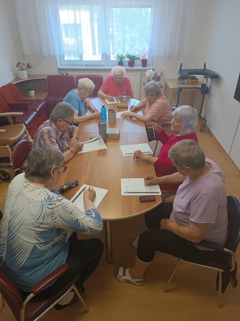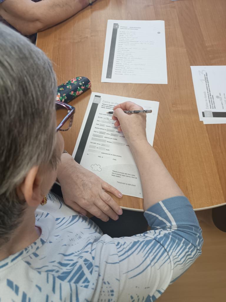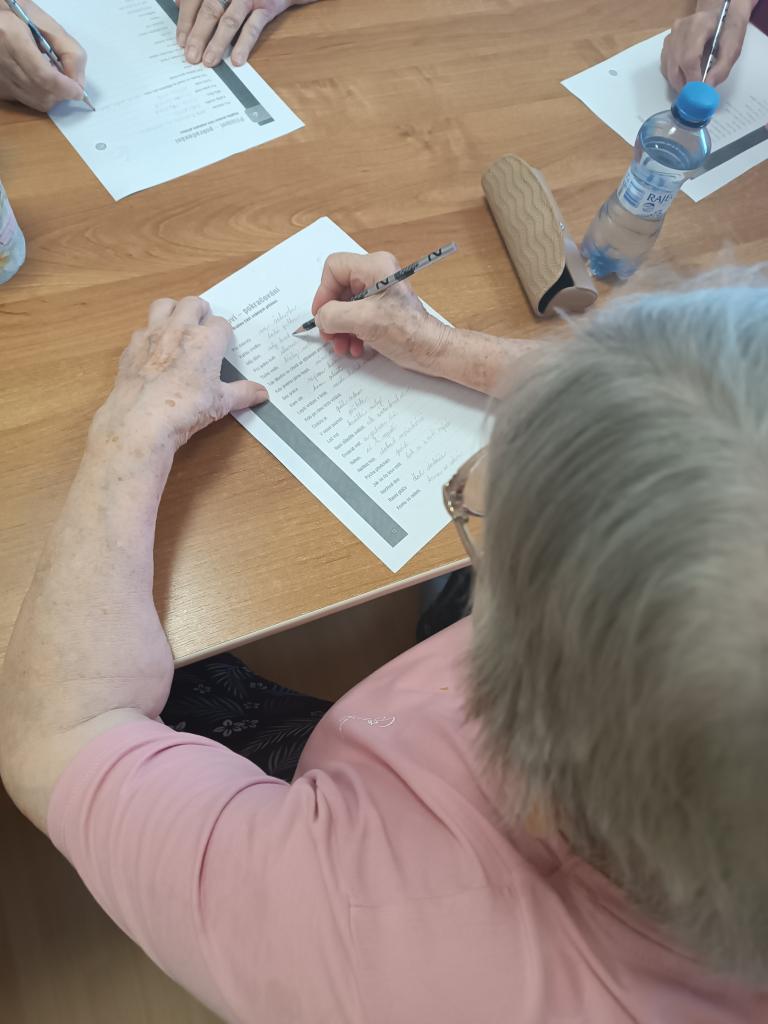 V menší skupince si dopoledne klientky protrénovaly dlouhodobou i krátkodobou paměť doplňování různých úkolů. Při doplňování křestních jmen do písniček jsme si společně i zazpívali.