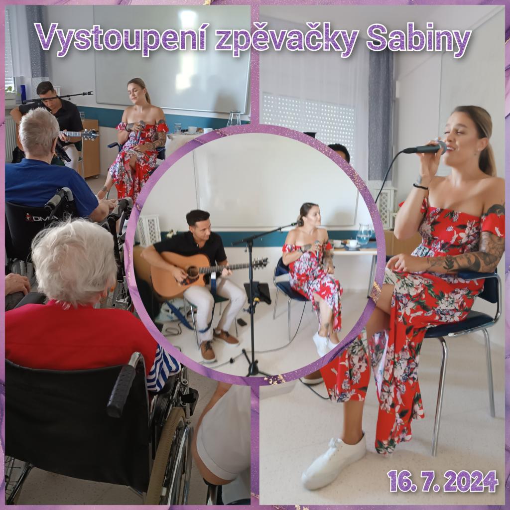 Svou návštěvou nás poctila zpěvačka Sabina, která jako Ježíškovo vnouče zpříjemnila odpoledne našim seniorům a zazpívala jak české tak zahraniční hity. Sabinu jsme mohli vidět jako jednu ze soutěžících v SuperStar. Děkujeme za její čas.