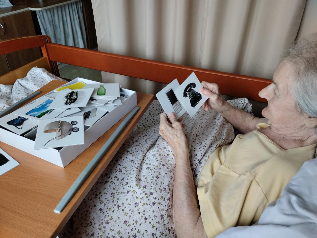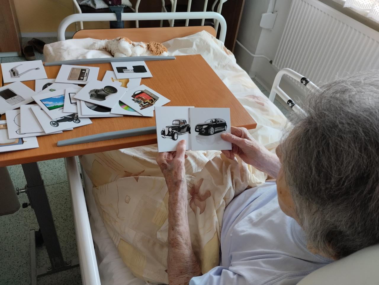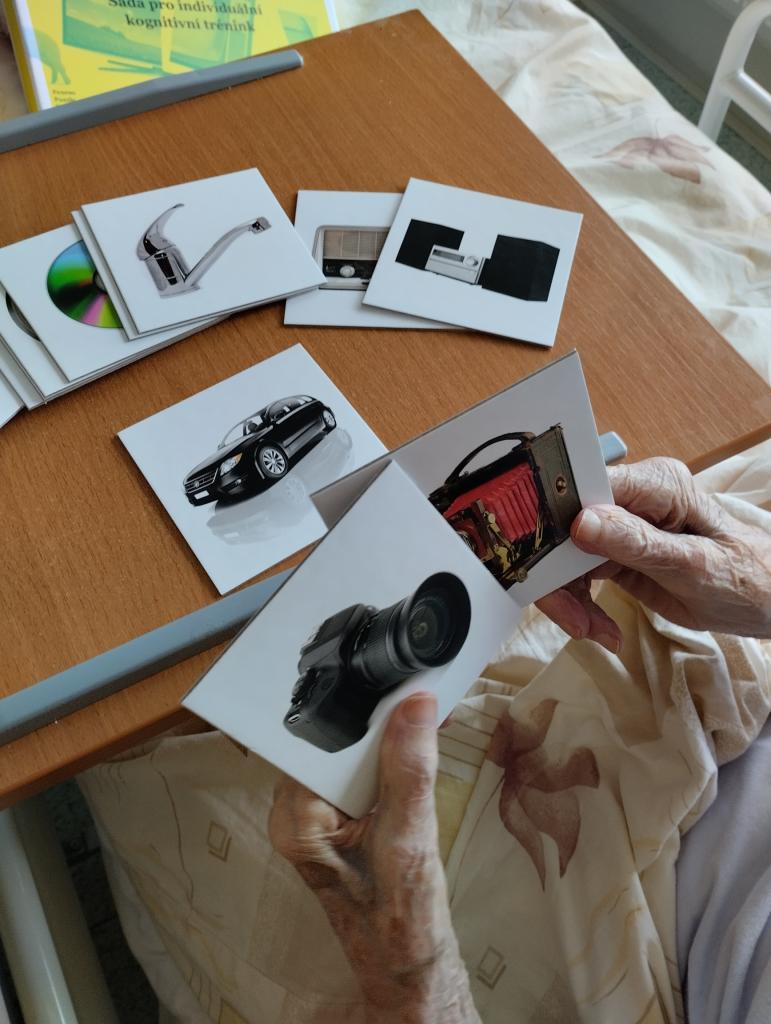 Reminiscenční terapie se zaměřuje na dlouhodobou paměť. Tentokrát proběhla s využitím vzpomínkových kartiček, na kterých byly vyobrazeny staré a nové předměty blízké našim klientům.