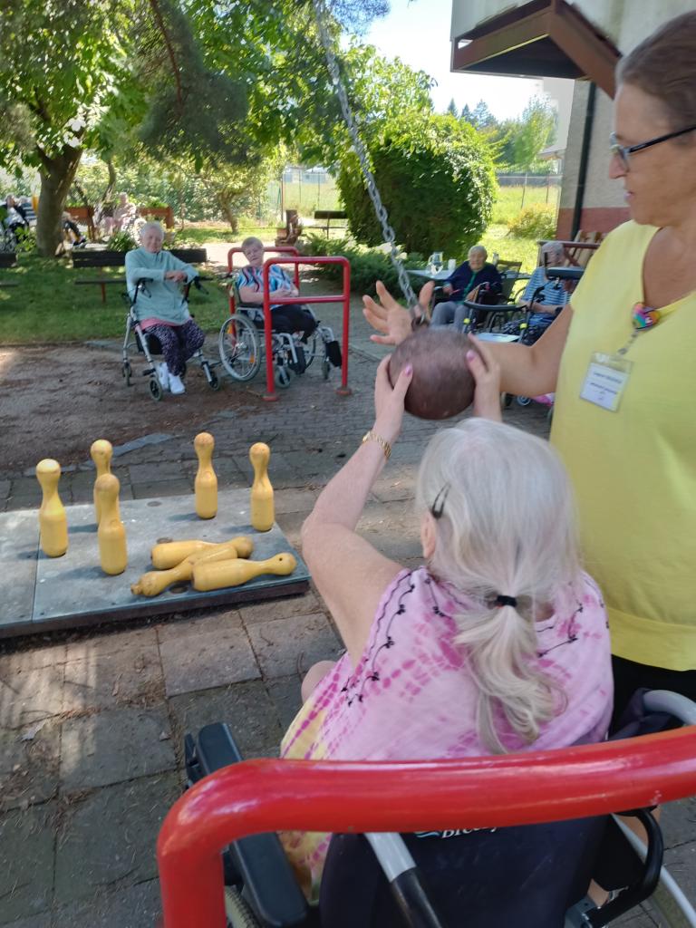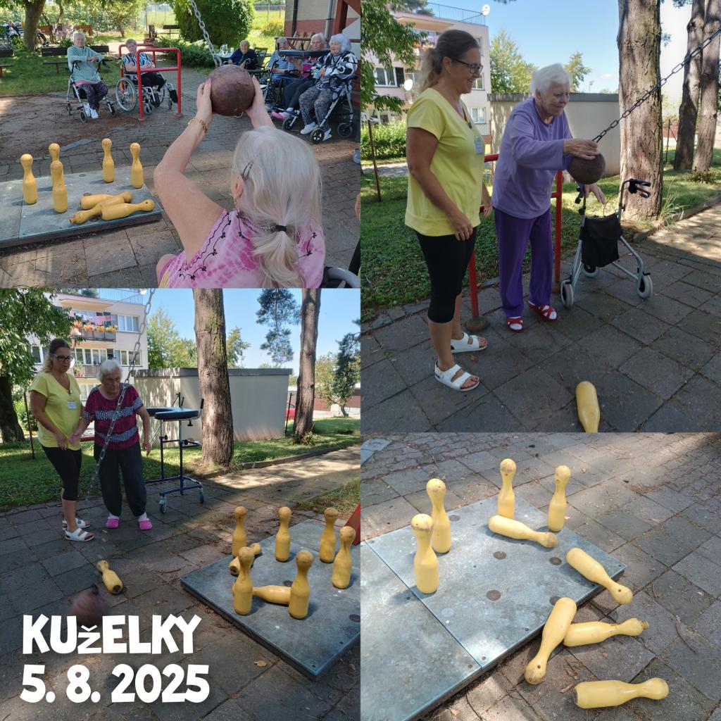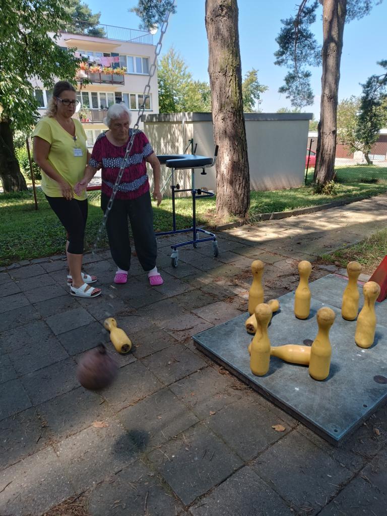 Klienti si odpoledne užili volnočasovou aktivitu v podobě hry ruských kuželek na zahradě. Navzájem se povzbuzovali, panovala dobrá nálada, takže si nakonec hru vyzkoušeli i ti, kterým se nechtělo.