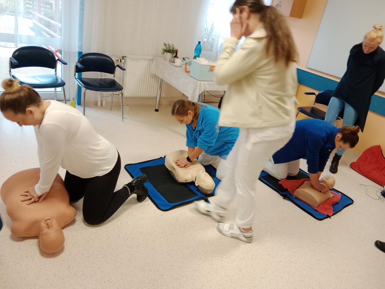 Po odborné přednášce zkušených lektorek následoval praktický nácvik poskytování první pomoci.
