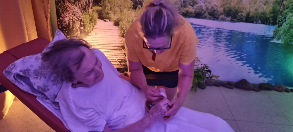V nově zřízené relaxační místnosti probíhají první terapie. Tentokrát na téma moře. Klienti si odnesli pozitivní zážitky, a to jak ti, kteří u moře byli, tak ti, kteří znají toto téma jen z povídání.